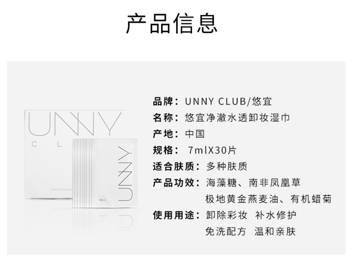 现货▲30片独立包装!韩国unny卸妆湿巾 深层清洁眼唇脸 便携式