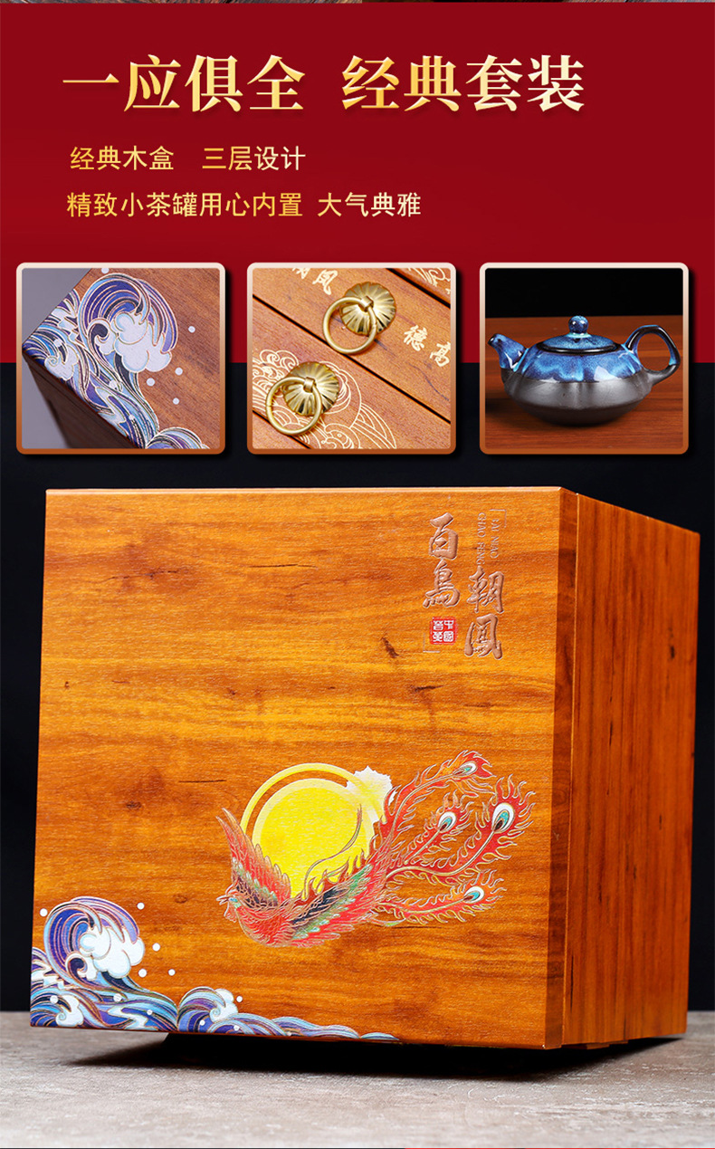 【百鸟朝凤!四层+三大茗茶+茶具套装】一口下去,顿时满足味蕾!金骏眉茶叶小罐红茶礼盒装大红袍铁观音送礼品,