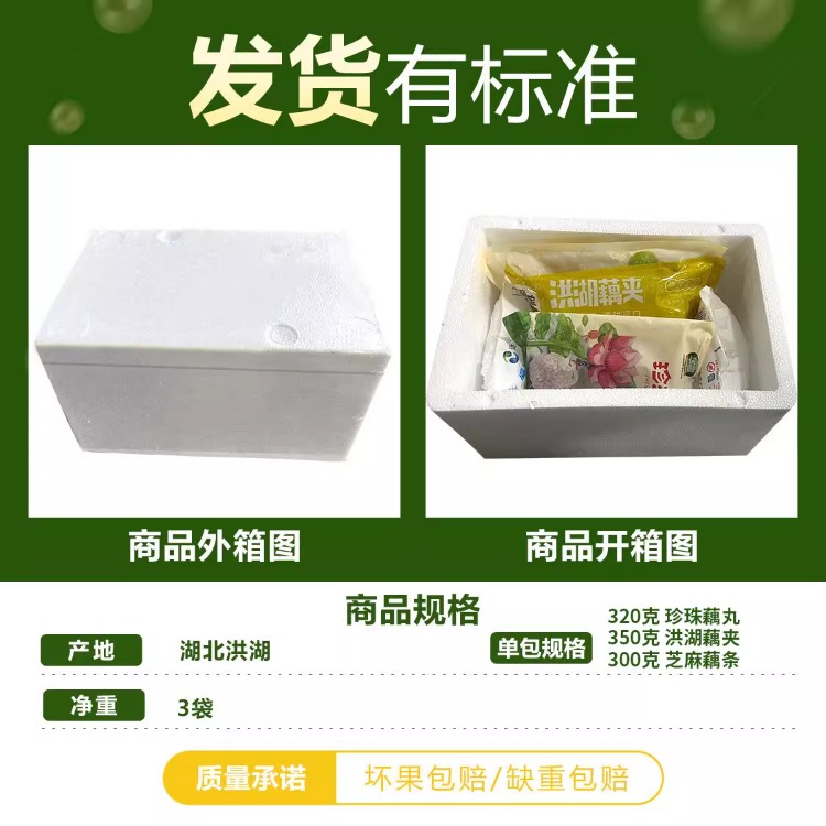 【宜昌助农馆】】华贵 洪湖芝麻藕条 藕丝糯米珍珠藕丸 火锅猪肉藕夹 3包速食组合