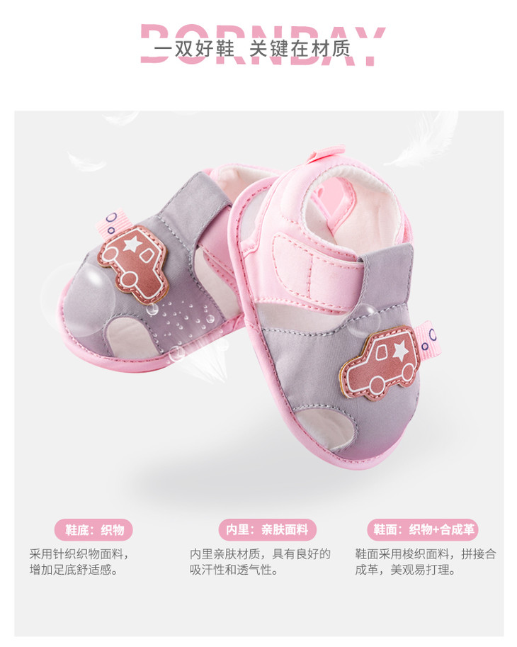 贝贝怡男女宝宝步前鞋夏季新款婴幼儿防滑软底清凉透气凉鞋202X257