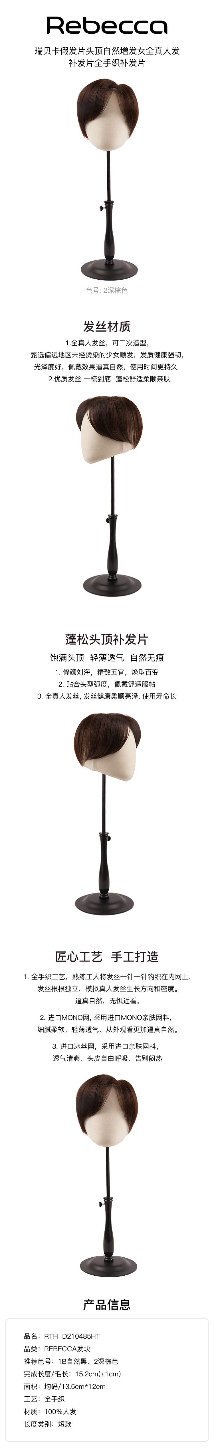 Rebecca瑞贝卡假发片头顶自然增发女全真人发补发片全手织补发片