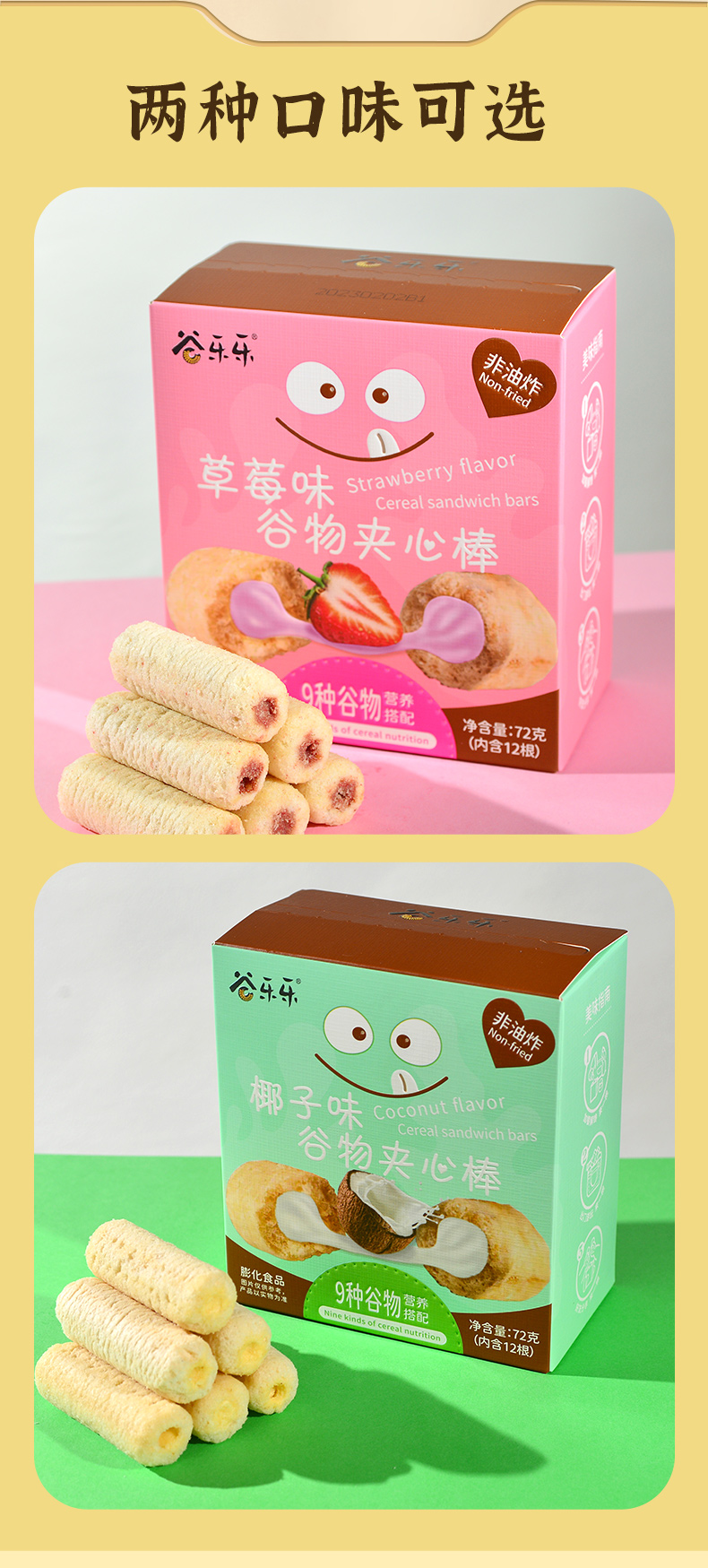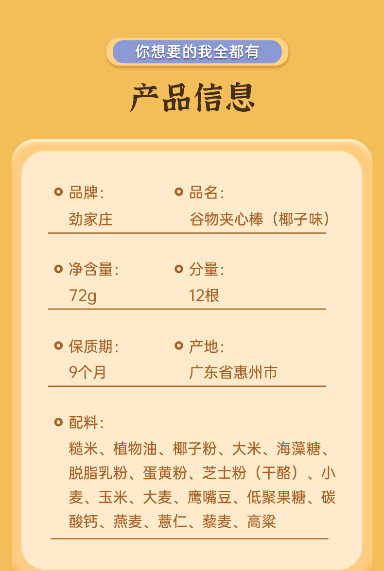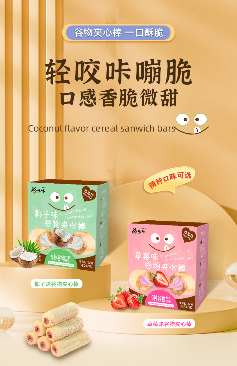 【产品名称】劲家庄谷物夹心棒(椰子味、草莓味)组合装