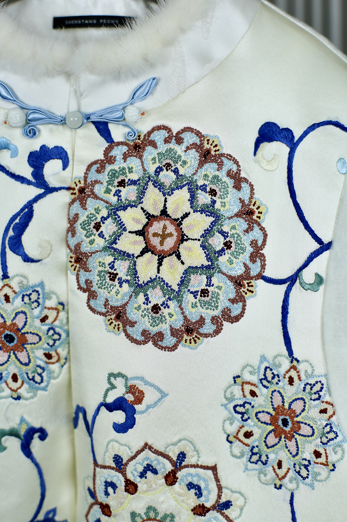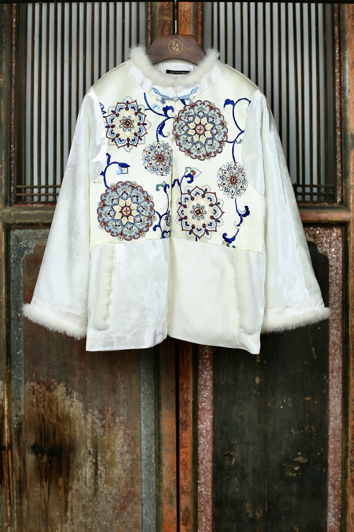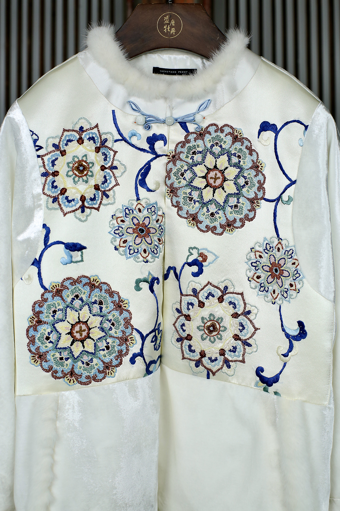 盛唐牡丹盛奢系列| 手绣真丝丝绒水貂棉外套