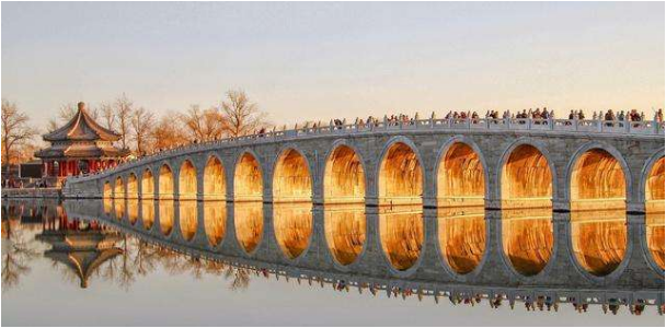 10:30 左右游览中国现存规模最大的皇家园林【颐和园】(首道门票已含)晚清时期作为慈禧太后的颐养之地。园内最有特色的是长廊,以精美的绘画著称,有546幅西湖胜景和8000多幅人物故事、山水花鸟。1992年颐和园长廊以“世界上最长的长廊”列入吉尼斯世界纪录;(参观时间约120分钟)沿昆明湖畔,在世界最长的画廊漫步,游览乐寿堂、仁寿殿、玉澜堂,十七孔桥,知春亭等园子内知名景点