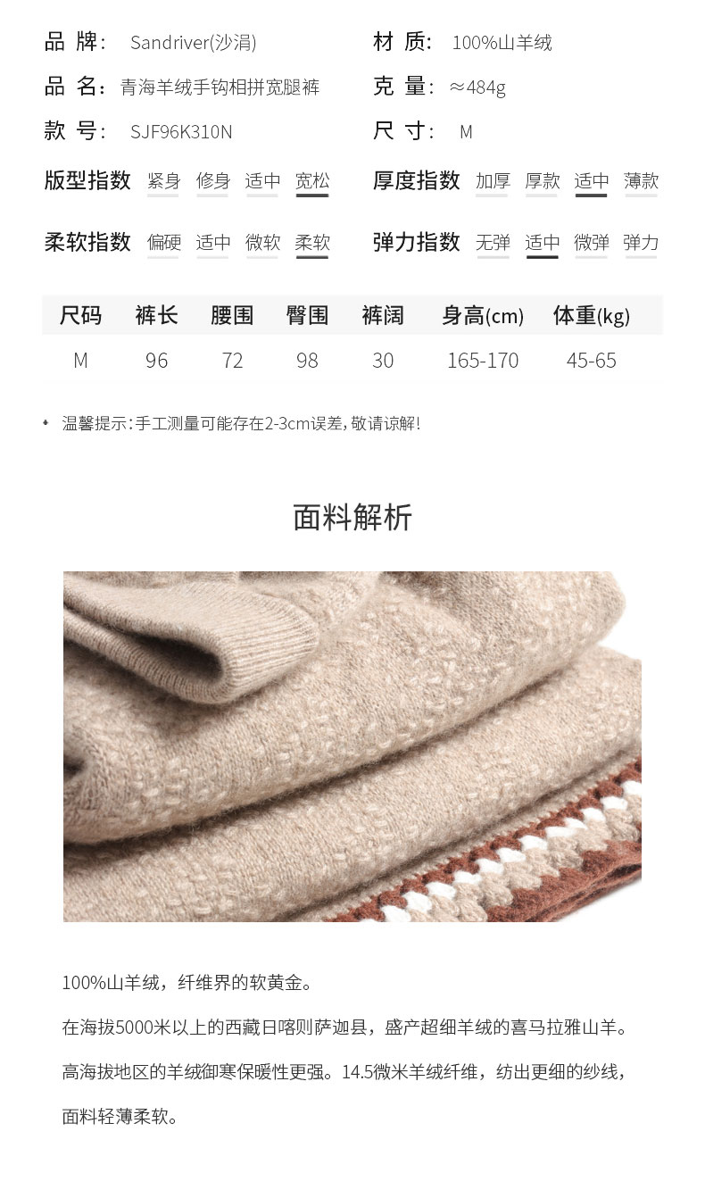 青海羊绒手钩相拼宽腿裤SJF96K310N