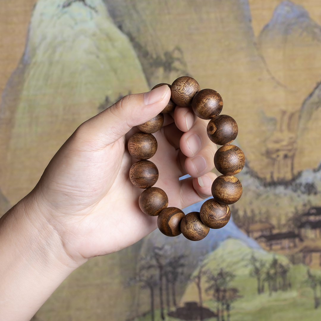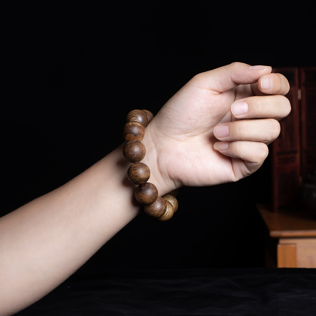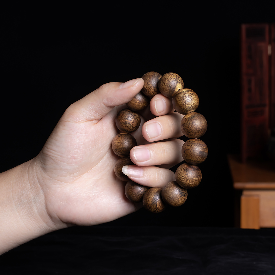 xy0345沉香18mm大素串豪华大手串,天然沉香18mm,原色原味,香味自然清甜,好料大料不多,上手豪华霸气,古色古香。