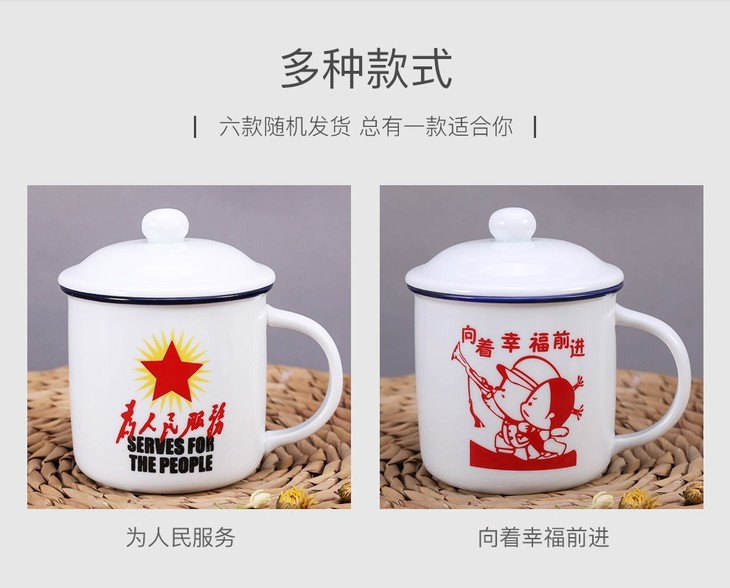 万淄(WanZi)经典复古陶瓷杯防搪瓷杯复古老式茶杯怀旧杯子410ml 小目标款