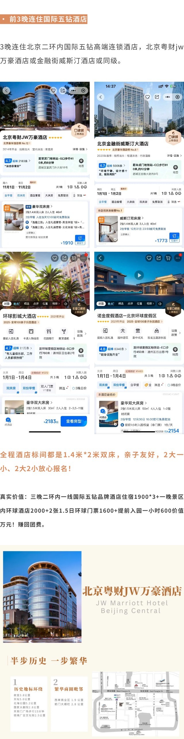 3晚连住二环内国际五钻高端连锁酒店,北京粤财jw万豪酒店或金融街威斯汀酒店或同级