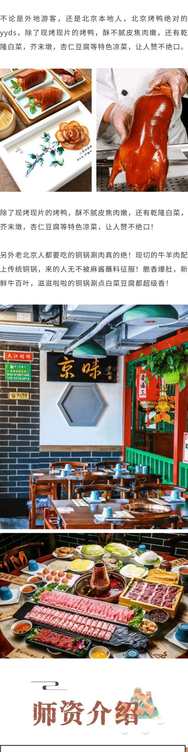 含5正4早,包含2个特色餐:北京烤鸭、铜锅涮肉,详见每日行程