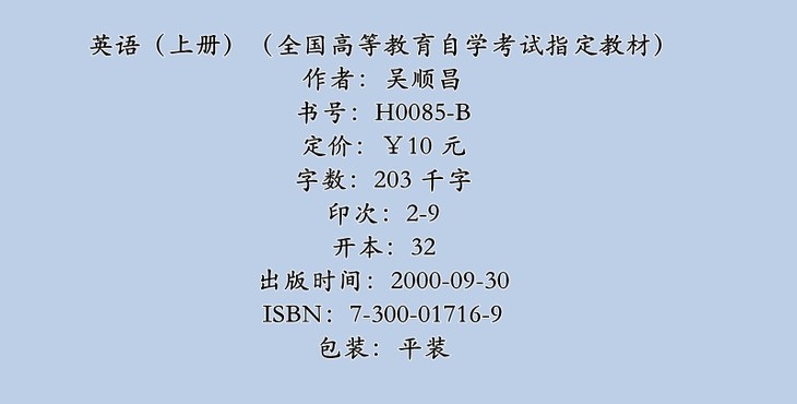 自考 英语(上册)0088)吴顺昌 人大出版社