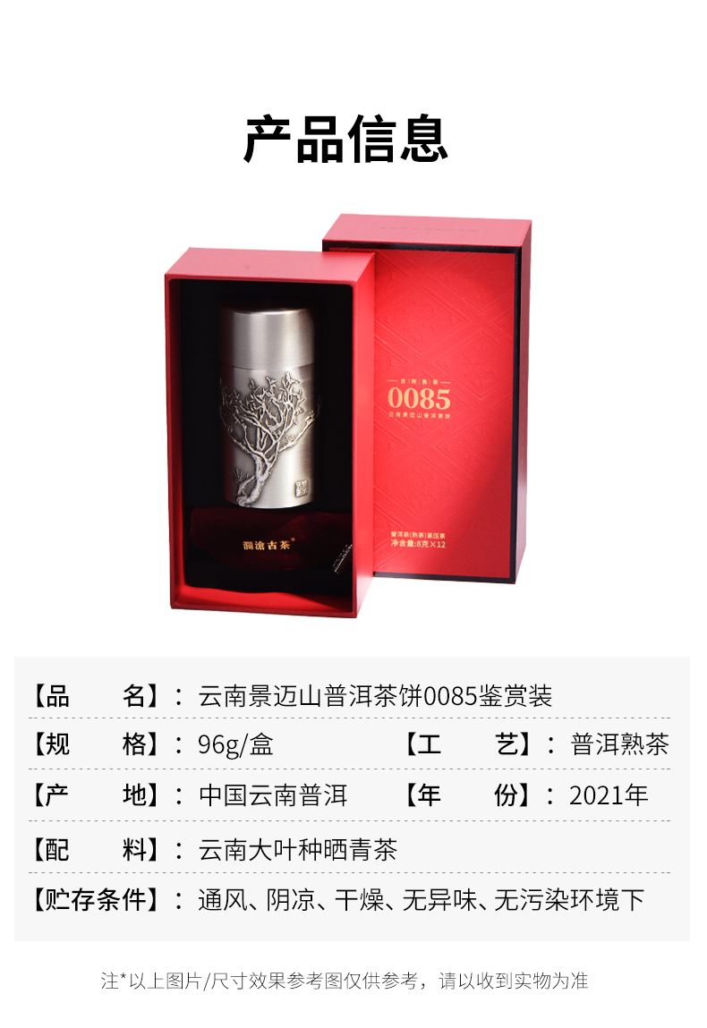 澜沧古茶2022年第十一代0085鉴赏装普洱熟茶小饼96g/盒