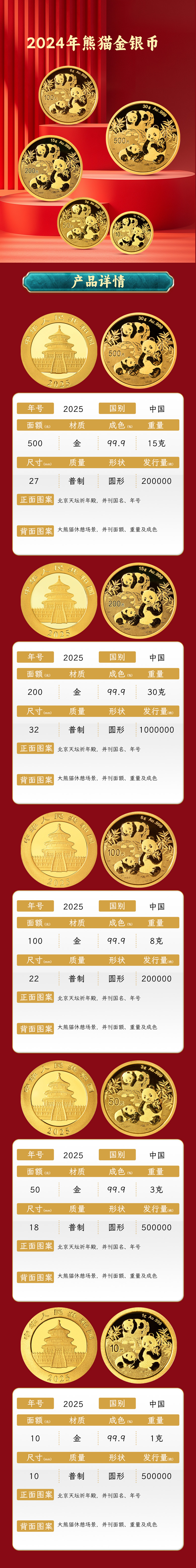 2025年熊猫金币 1克3克8克15克30克金猫 金套猫