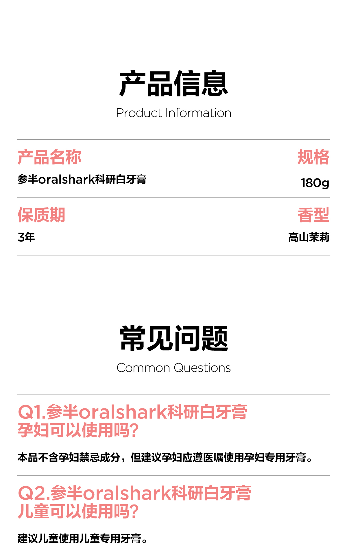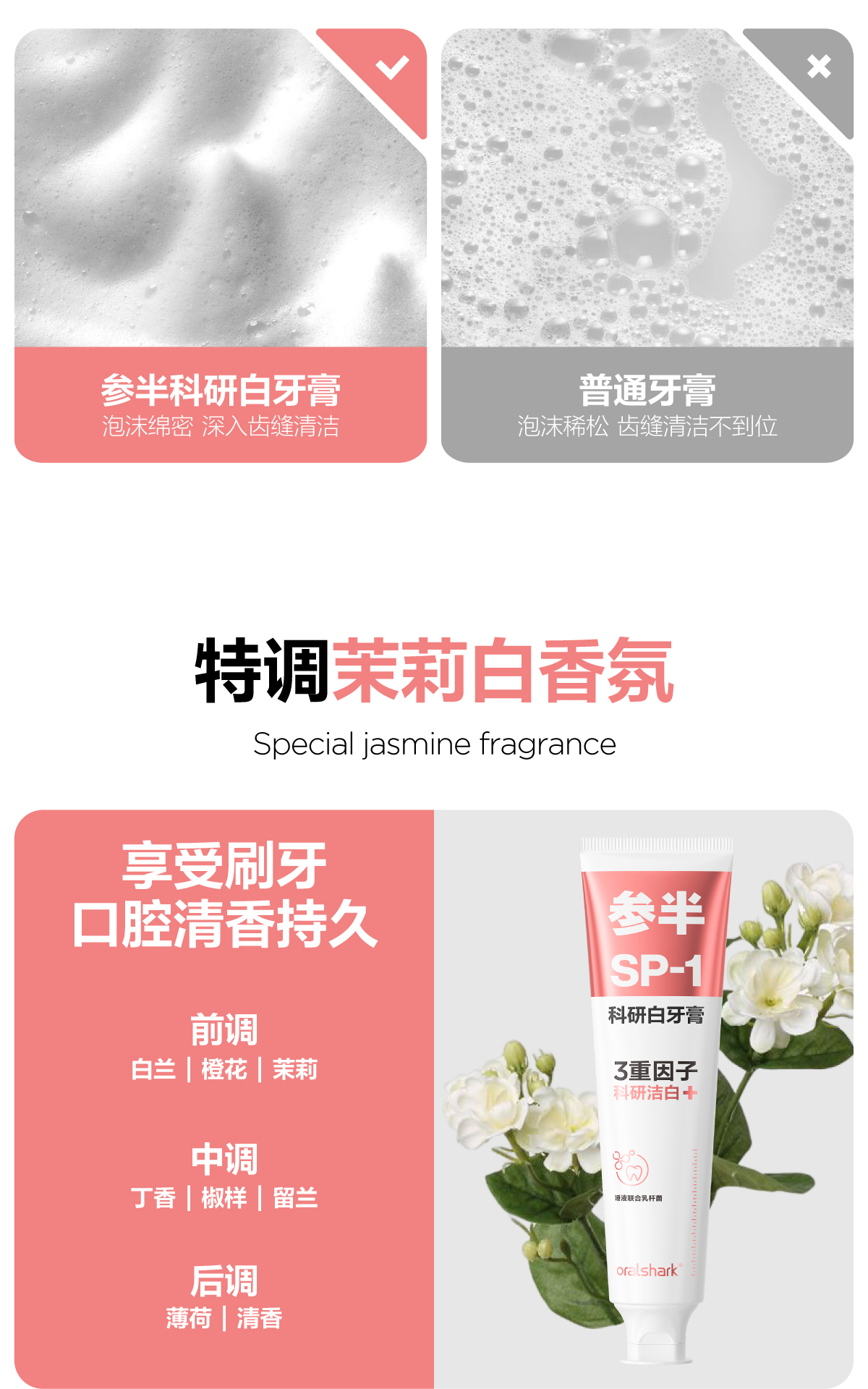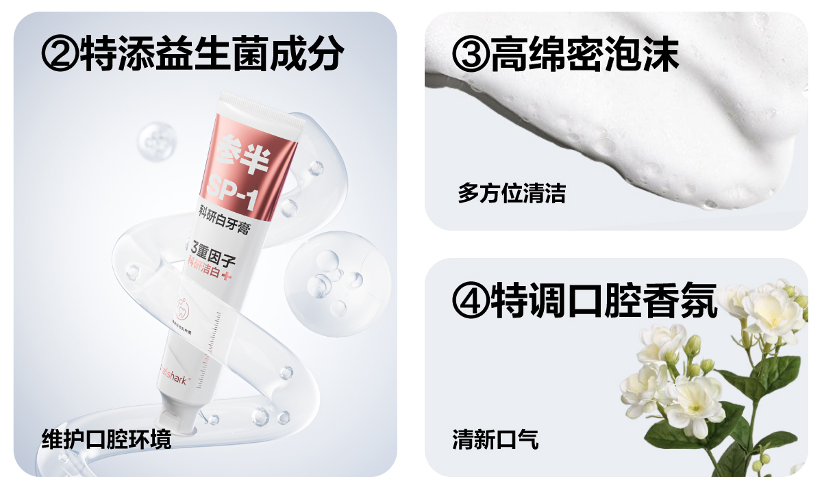 参半oralshark高山茉莉/玫瑰清茶味白牙膏(180g)
