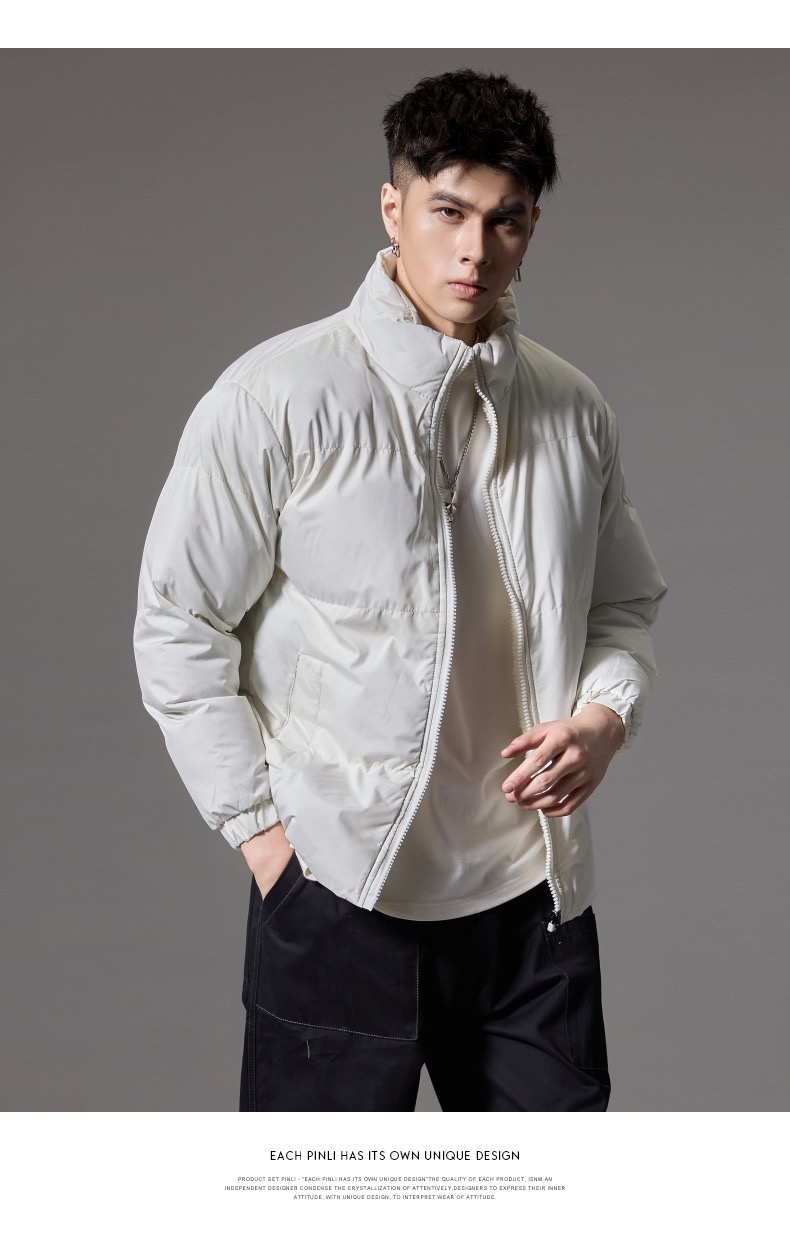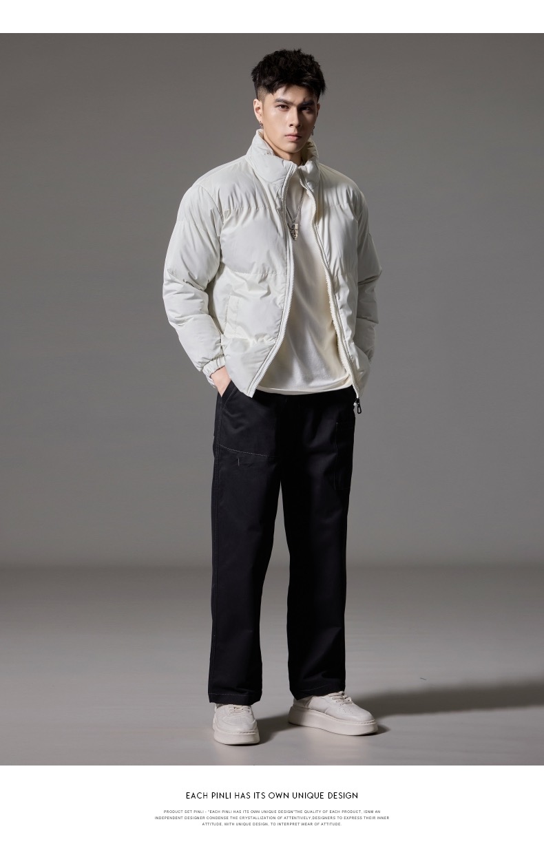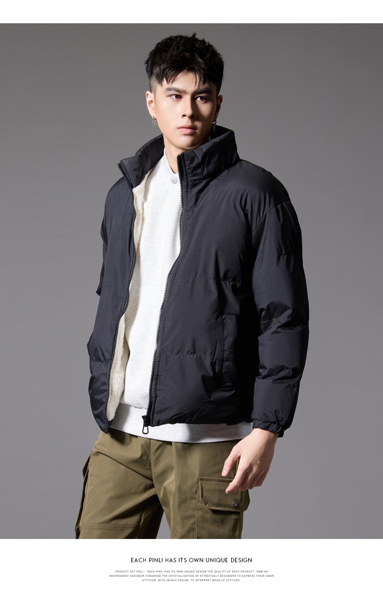 PINLI品立2024秋冬新款立领休闲棉衣外套仿羊羔绒面包服男棉服潮GD243105248