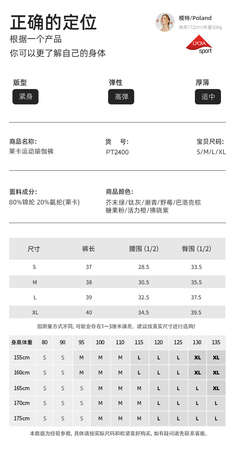 跃牌【周游世界系列】春夏新品防滑四分裤高弹莱卡瑜伽裤运动健身收腹裤PT2400