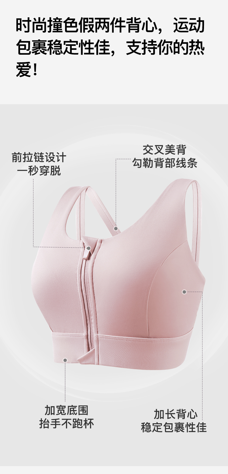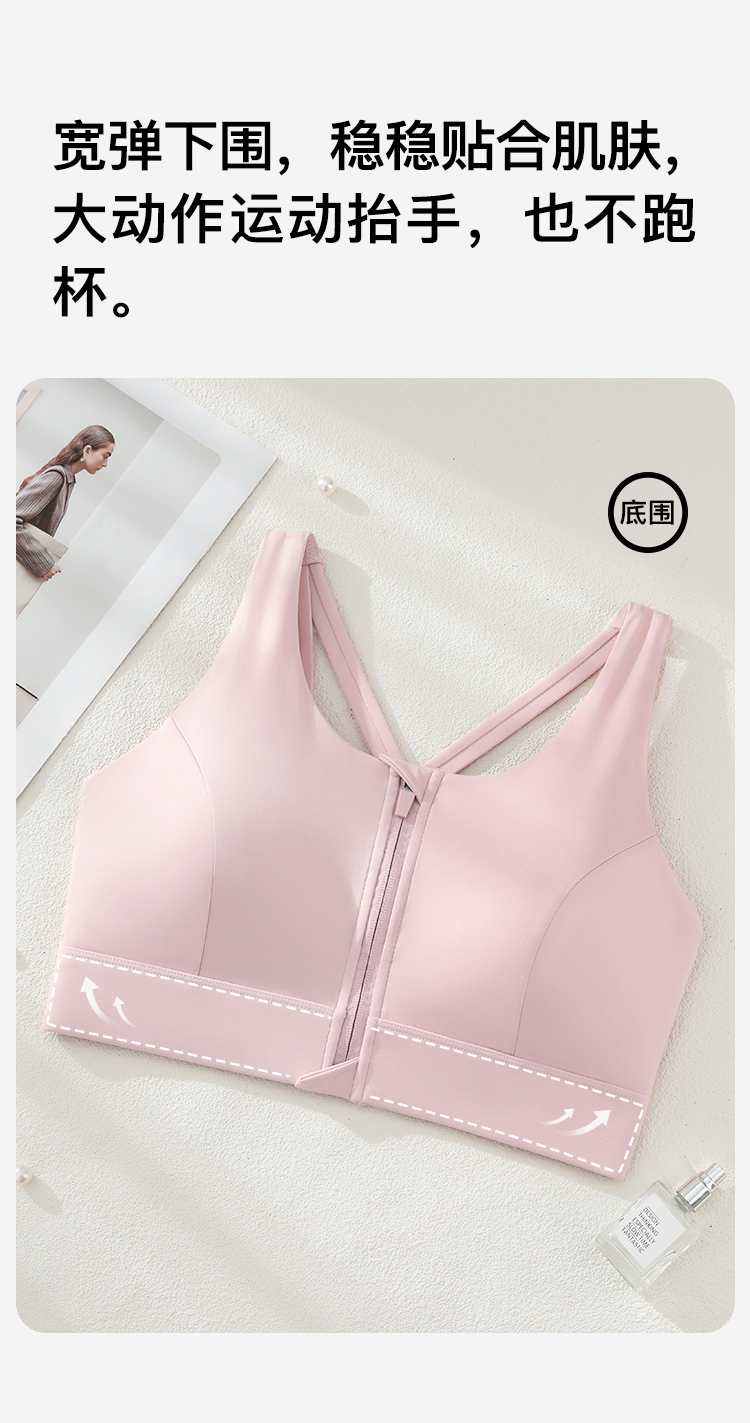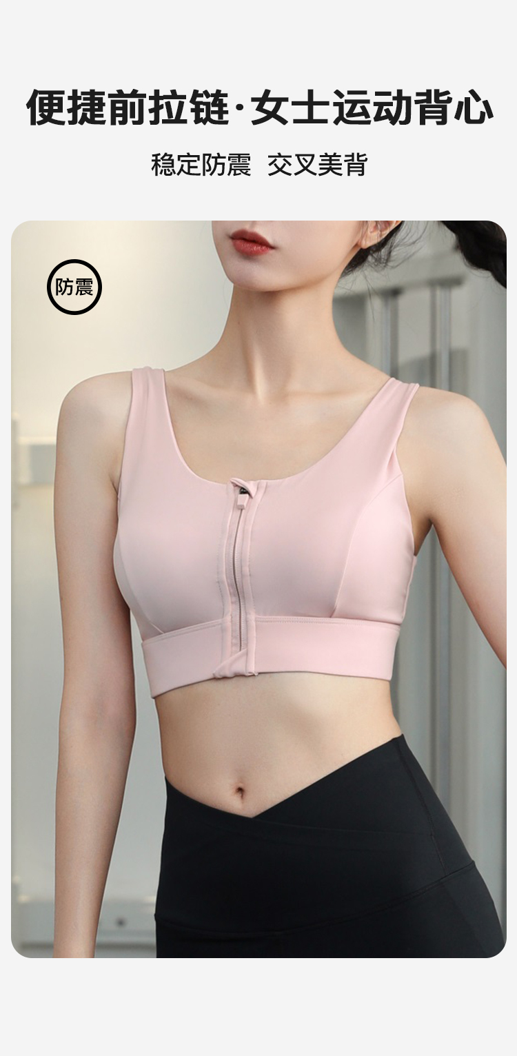 前拉链美背聚拢缓震防下垂运动内衣女跑步健身瑜伽文胸春夏款拉链运动文胸