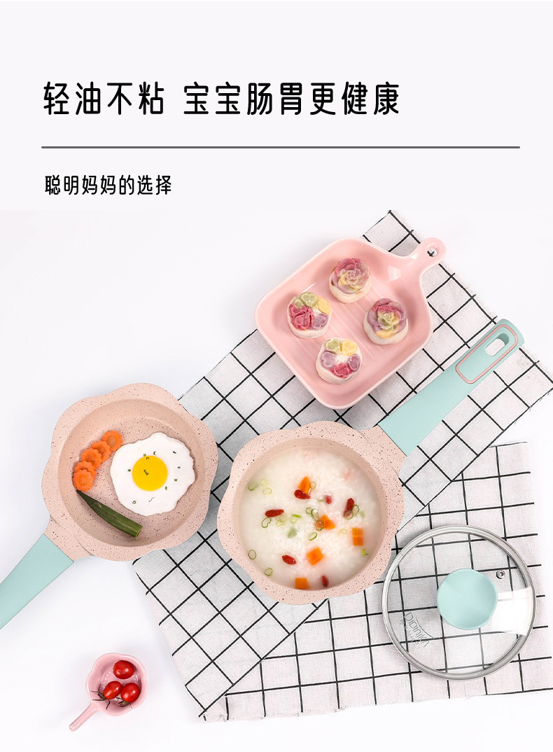 迪迪尼卡didinika花瓣辅食不粘锅麦饭石不粘锅宝宝煮粥锅迷你小奶锅