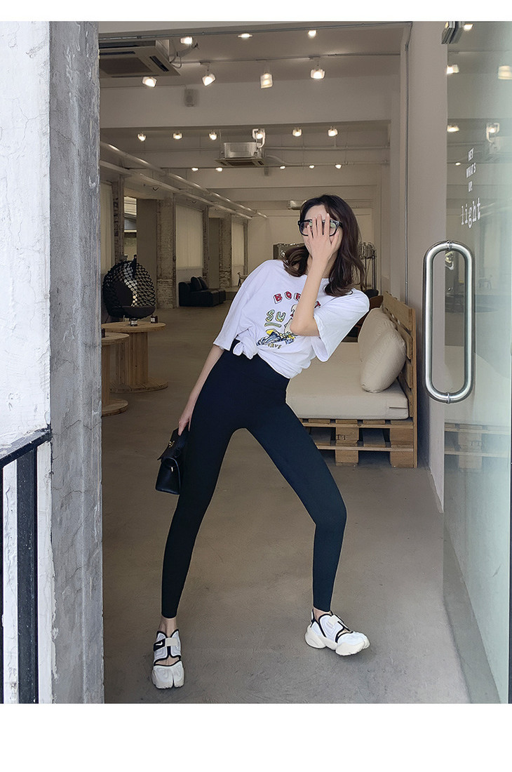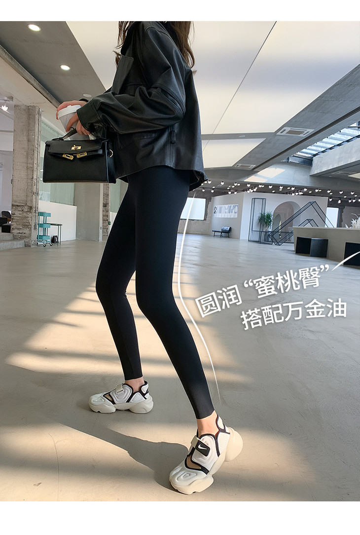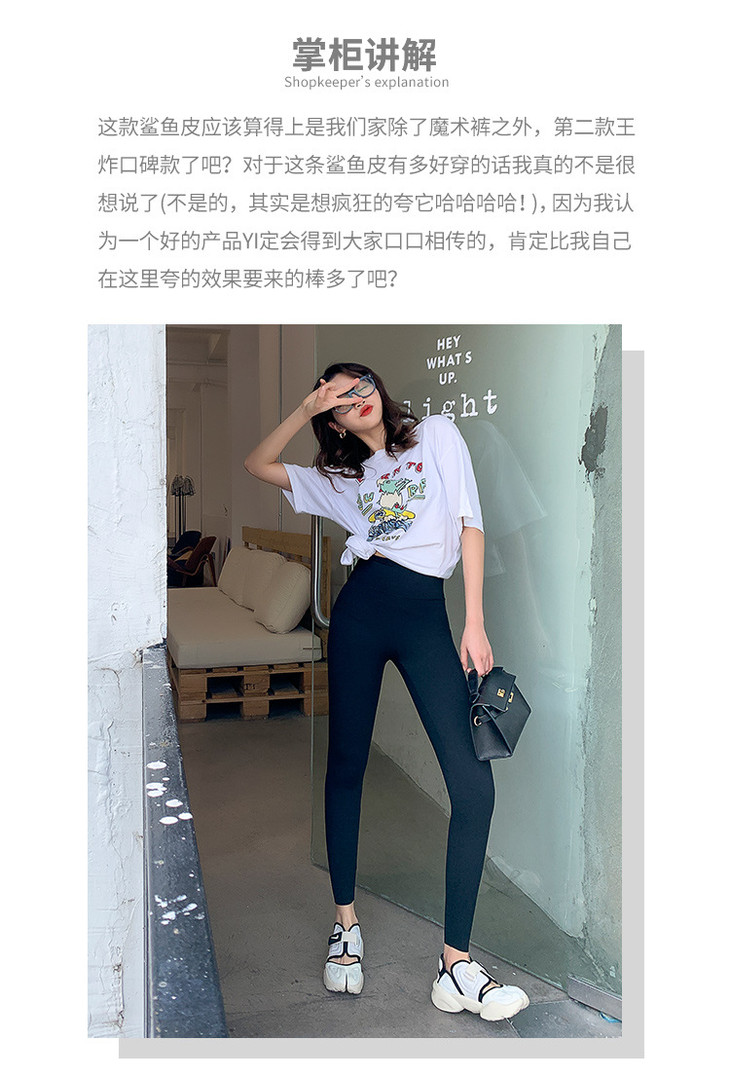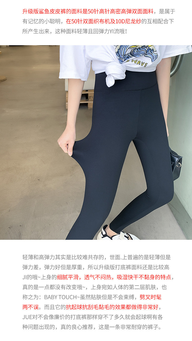 鲨鱼皮黑色打底裤女外穿大码春秋薄款液体紧身弹力芭比显瘦瑜伽裤