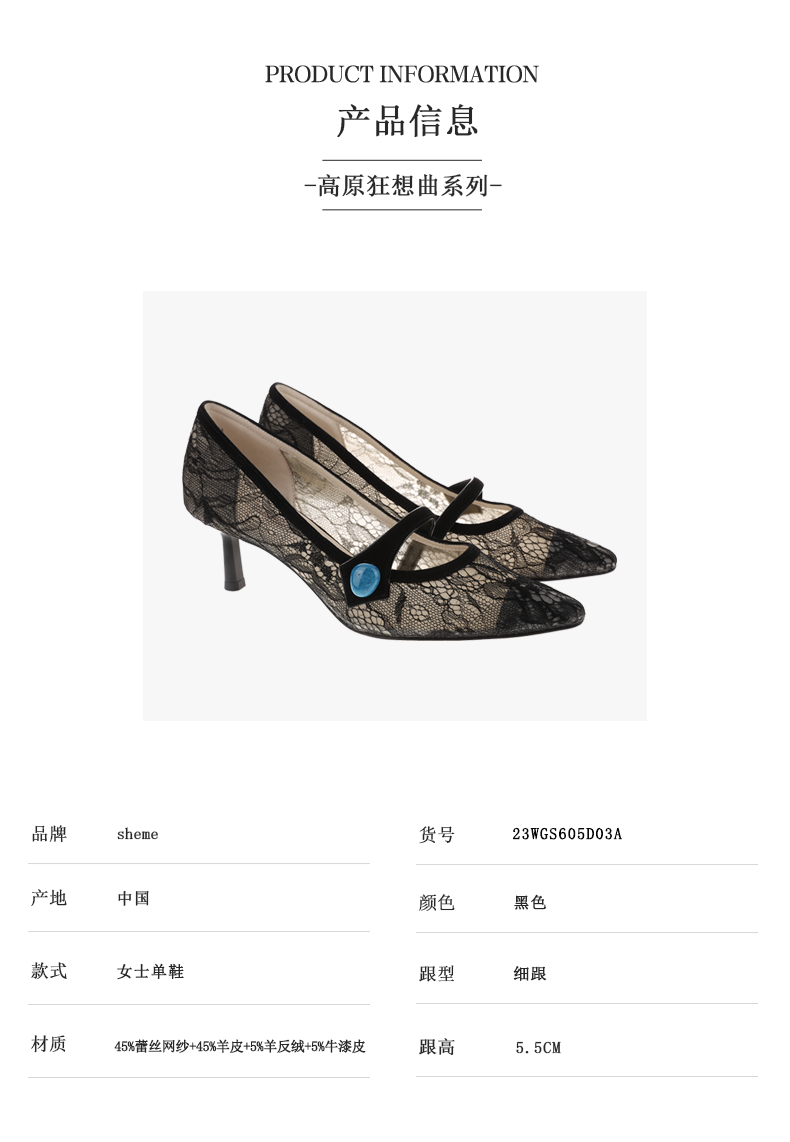 sheme高原狂想曲系列进口蕾丝面料优雅性感女士单鞋可定制