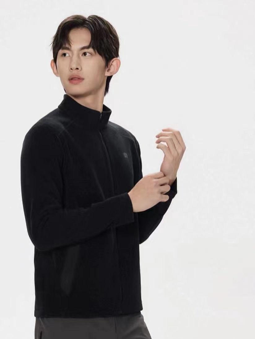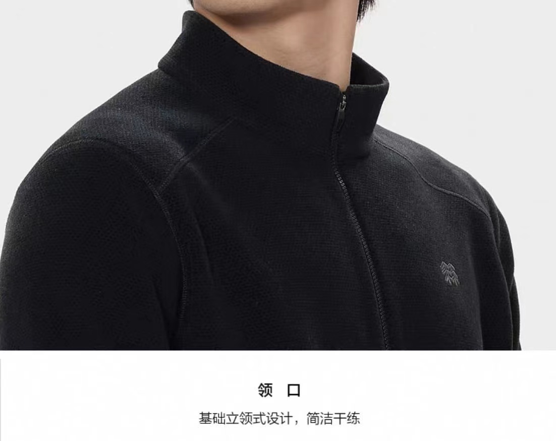 男士立领抓绒夹克秋冬透湿保暖外套户外运动上衣。身采用蜂窝状表面组织的POLARTEC THERMO PRO系列抓绒面料轻盈透气的同时保暖舒适。基础款式设计,既可外穿,也能与防风,夹克搭配叠穿,满足多样场景下的不同穿着需求压缩性优异,收纳性良好。秋冬季的di一件抓绒夹克,好穿的不得了!是我喜欢的简洁利落版型,搭配上立领的设计,上身特帅气!黑色衣身很会藏肉,还让搭配变得更简单了。是抓绒面料的,轻盈透气还保暖,轻松应对早晚温差,当做内搭也不会有闷汗黏腻的感觉,怎么穿都舒服!