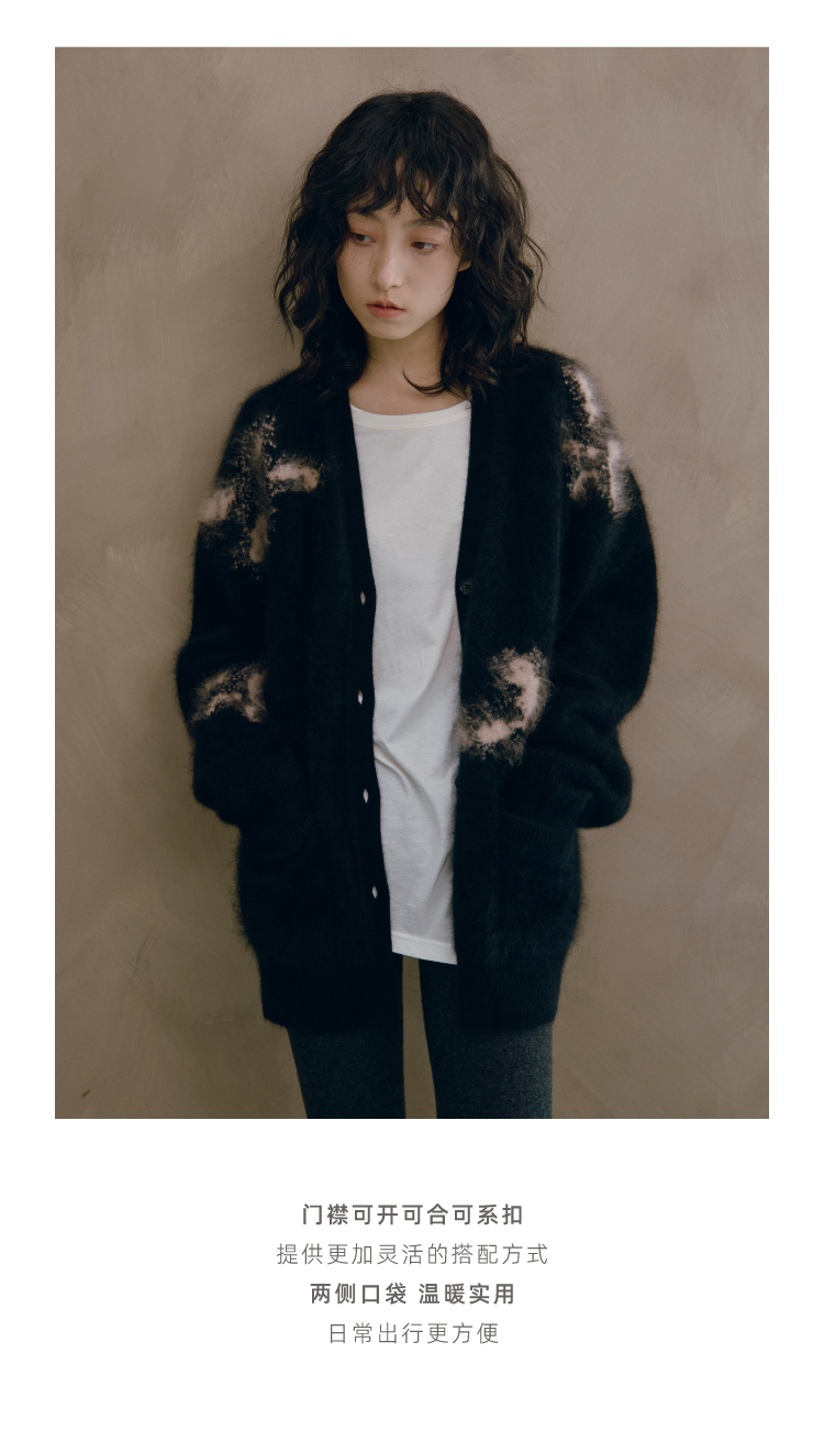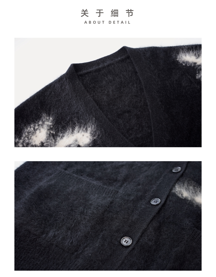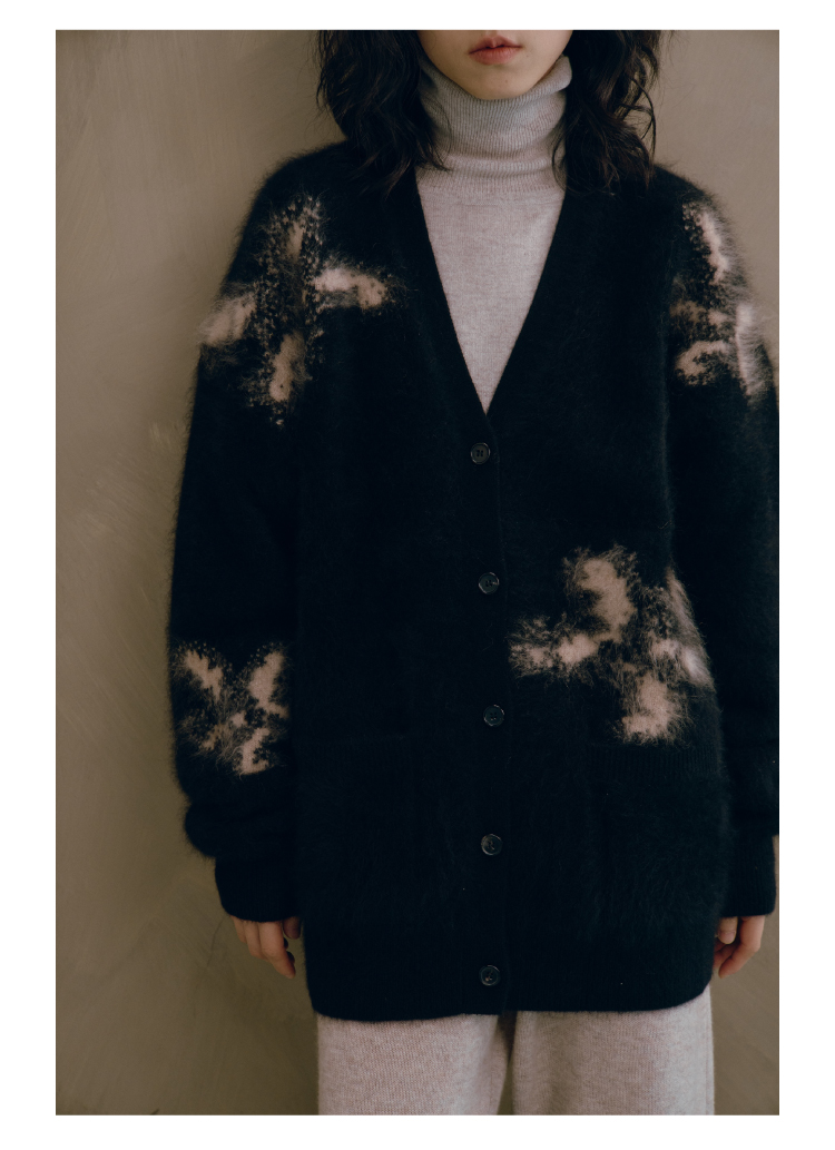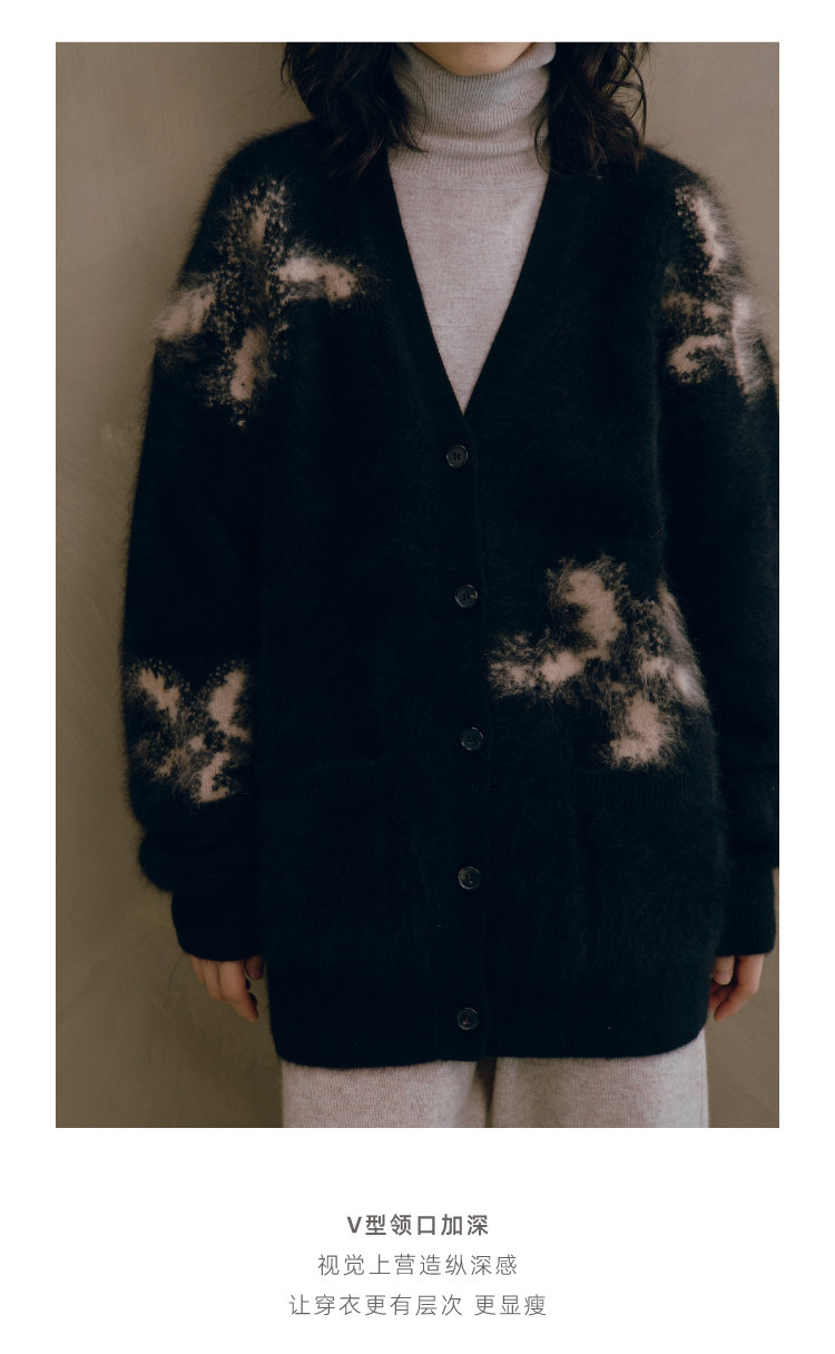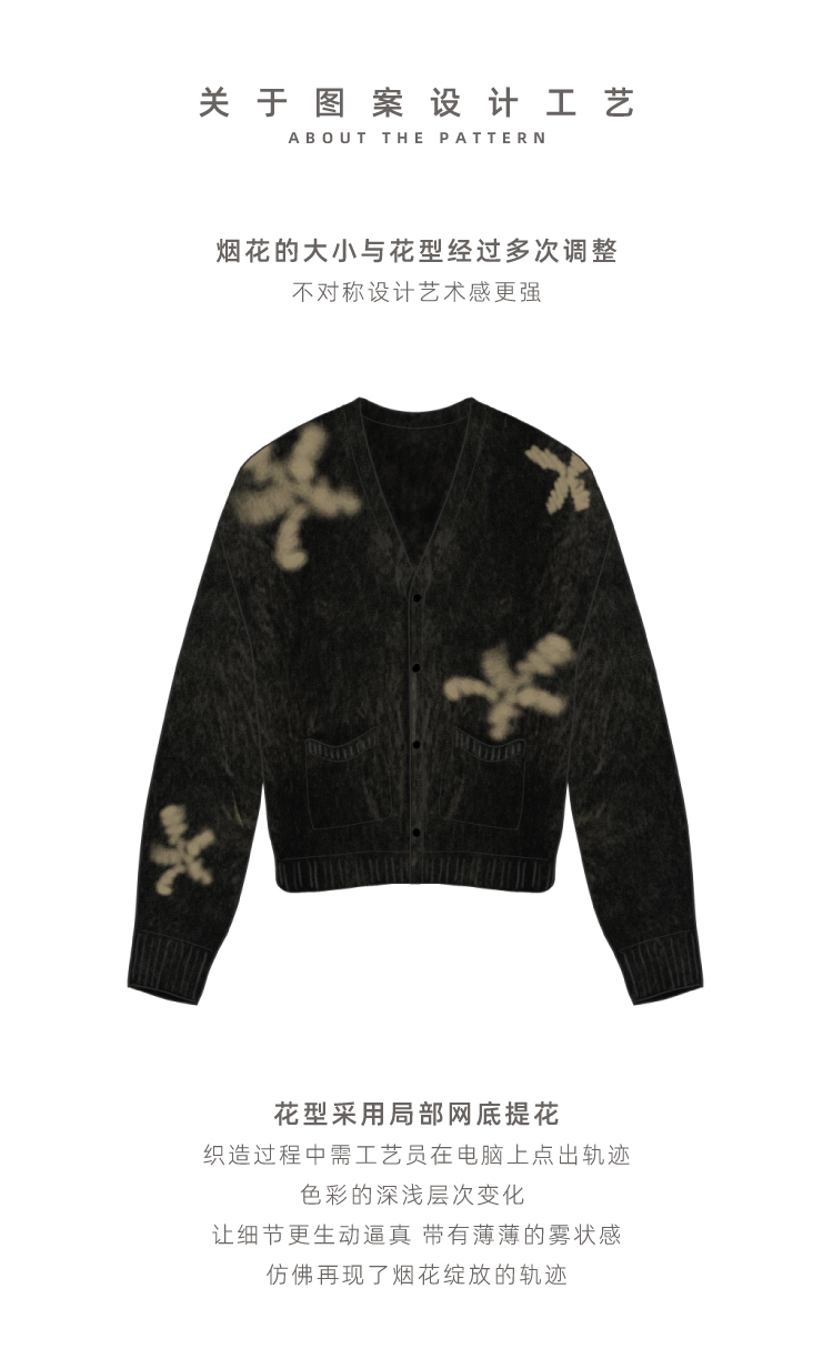 烟花拉毛提花羊绒开衫
