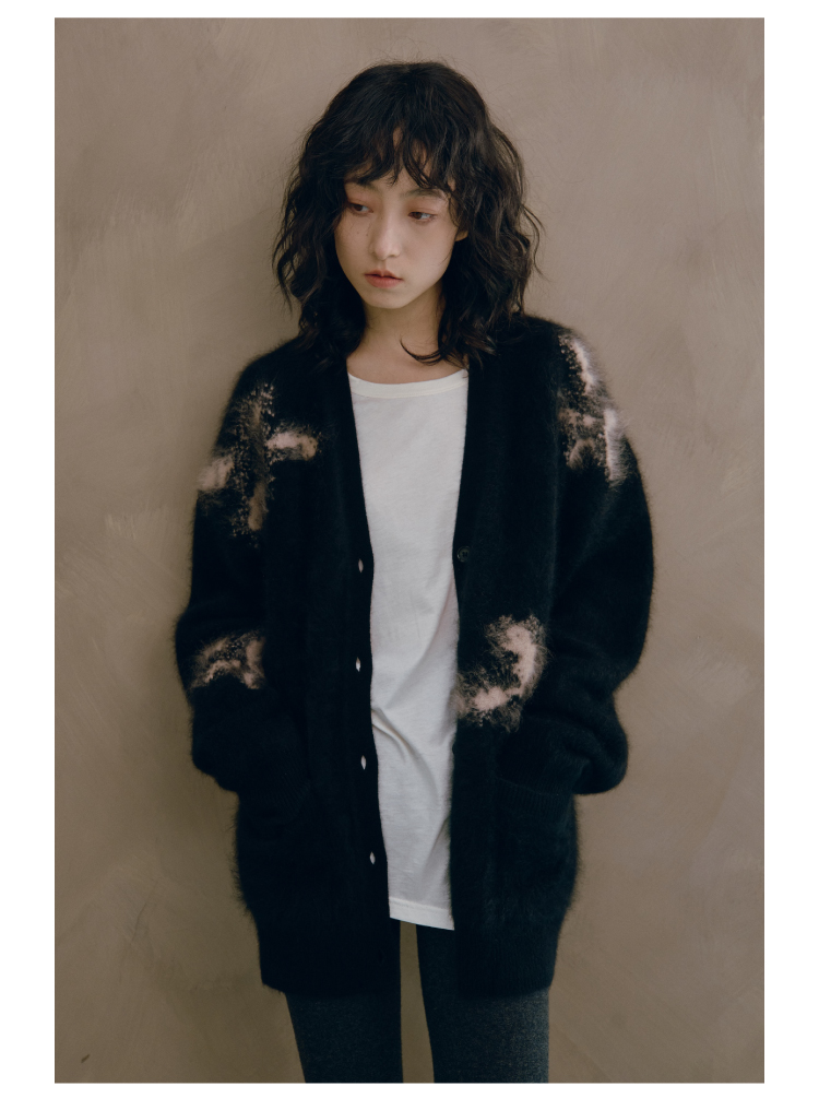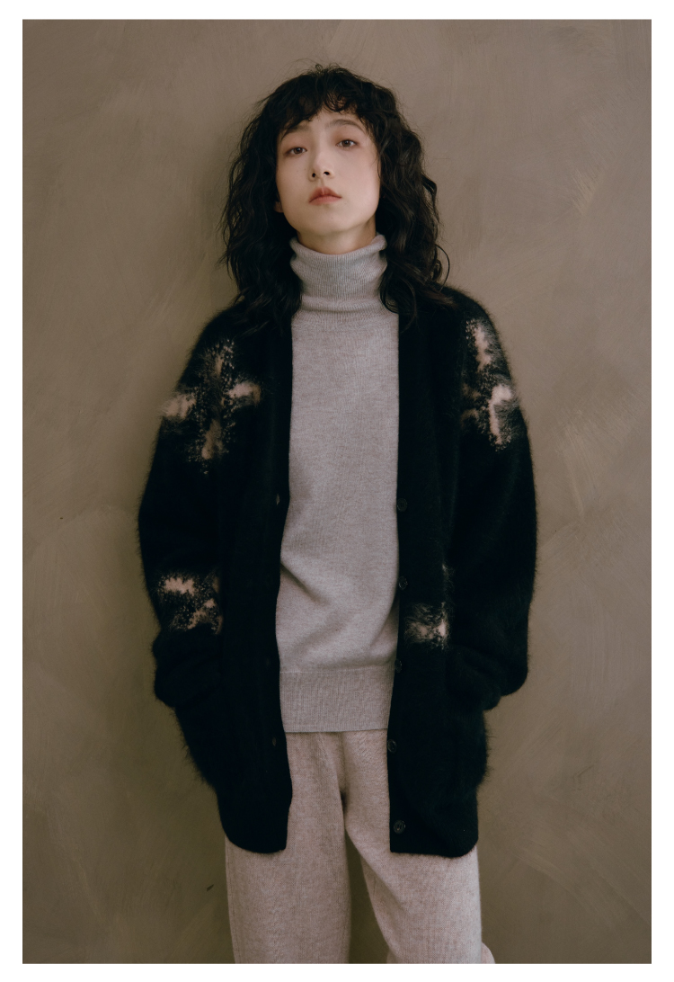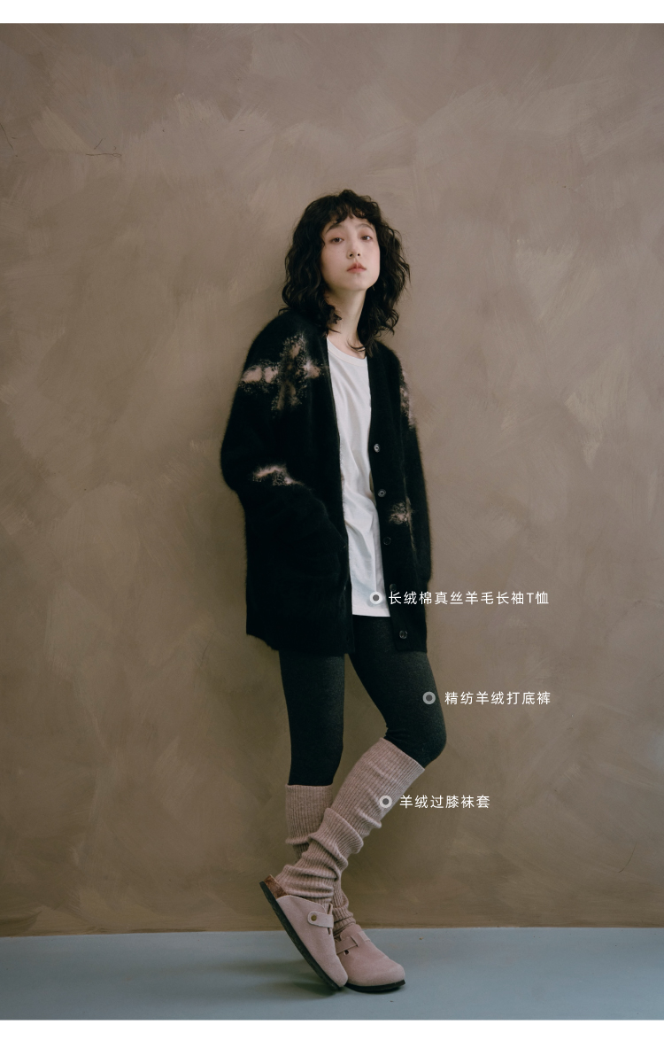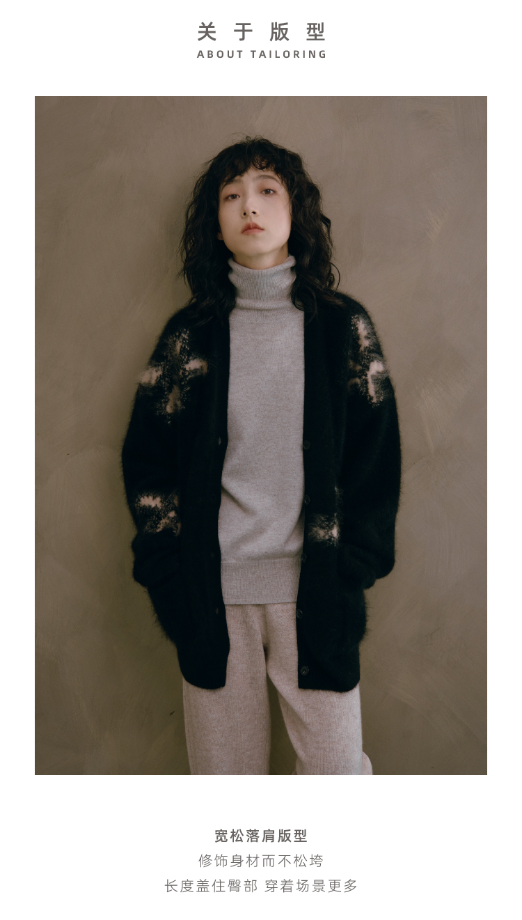 烟花拉毛提花羊绒开衫
