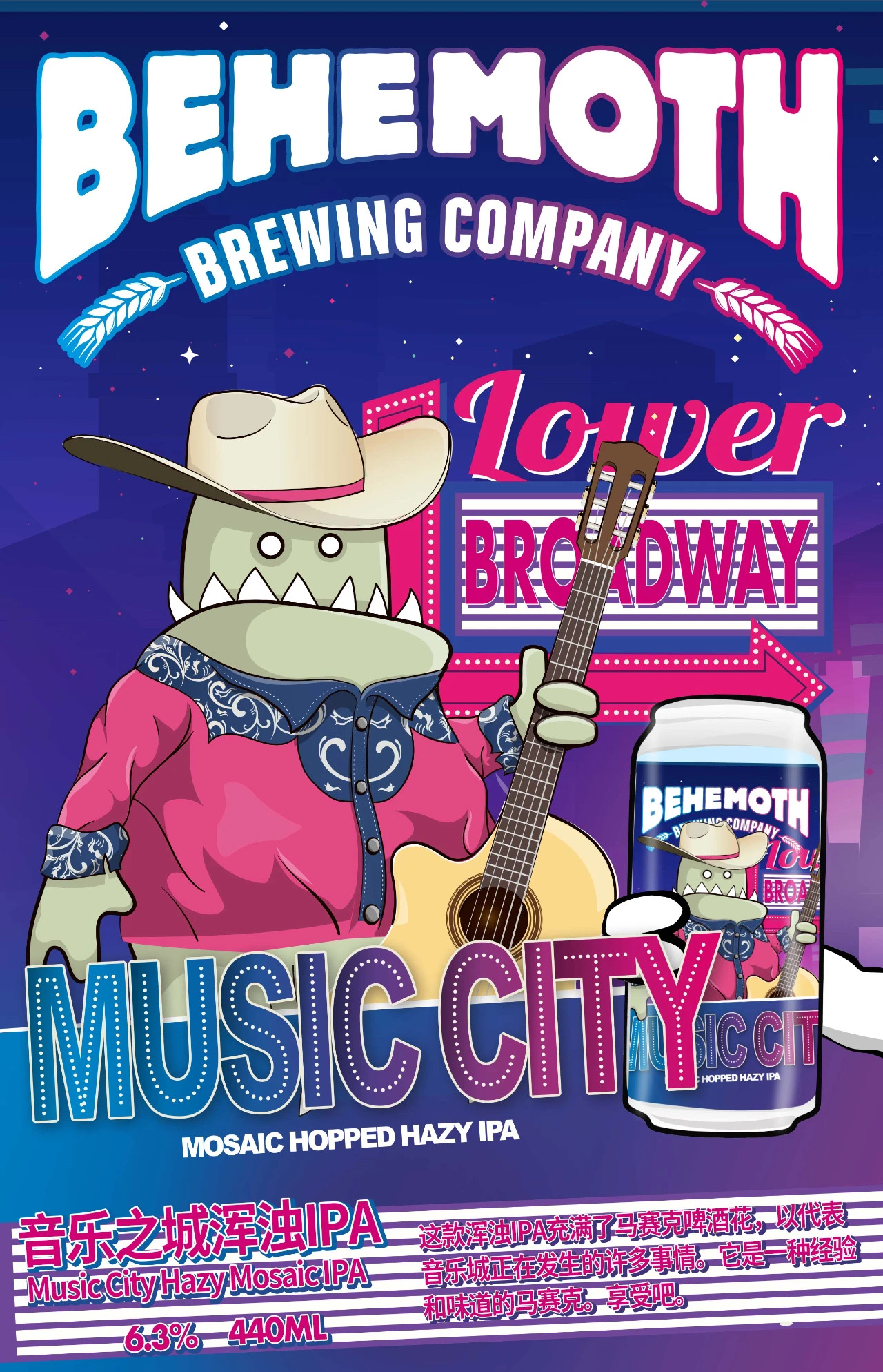 【冷库储存】新西兰比萌巨兽音乐之城浑浊IPA啤酒 6.3%vol 440ml