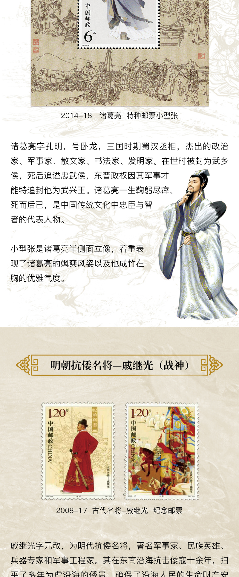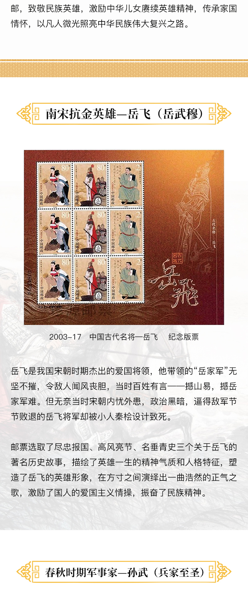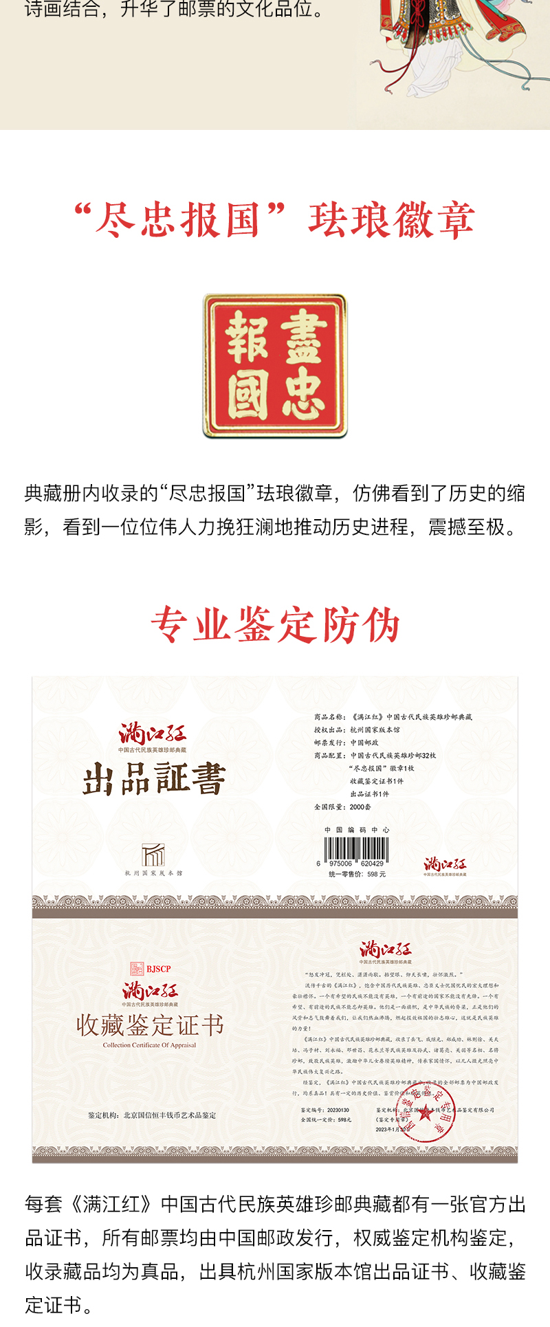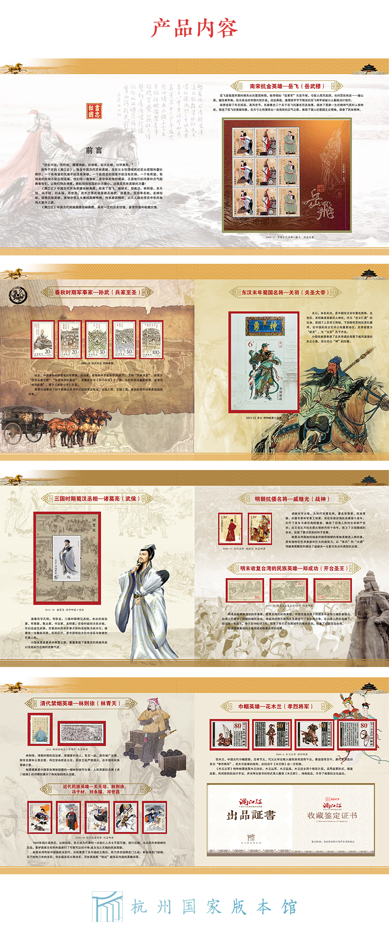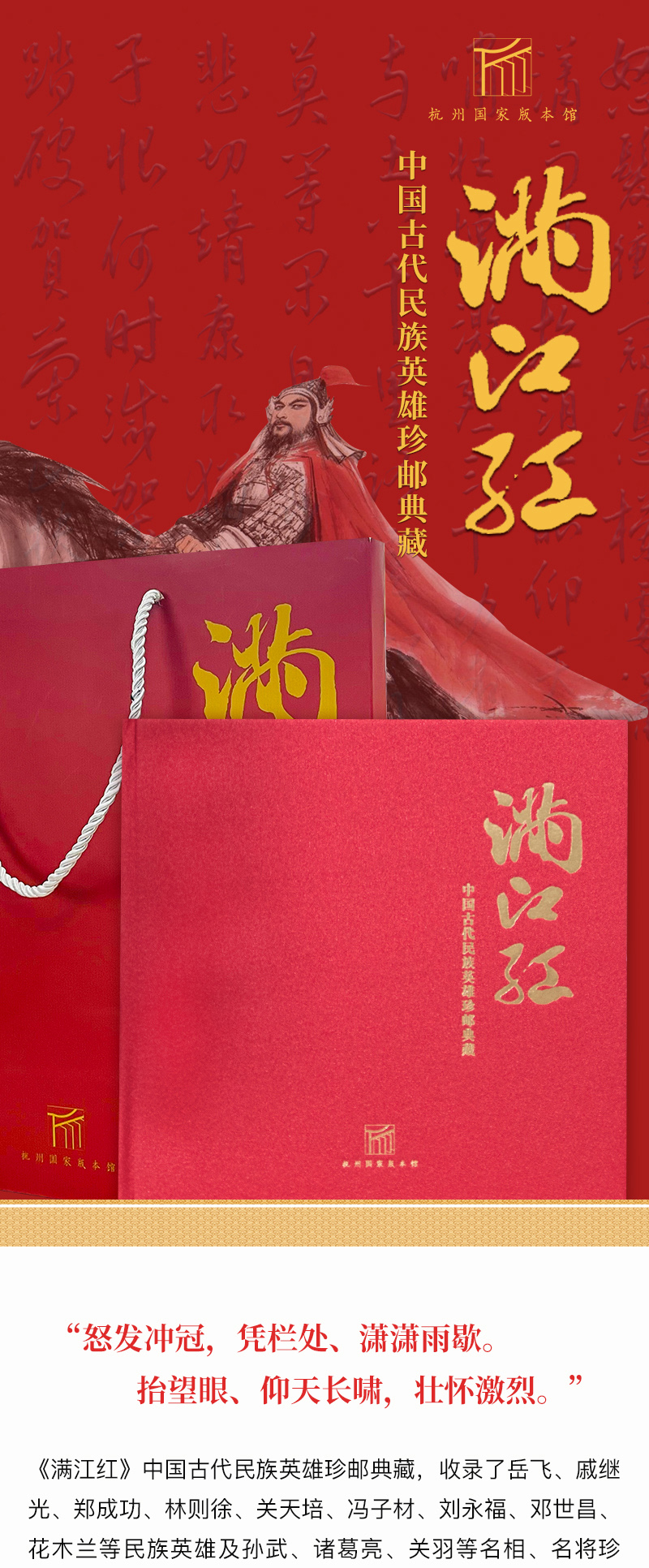 《满江红》中国古代民族英雄珍邮典藏,杭州国.家版本馆授权,32枚珍邮和1枚珐琅徽章,讲述13位民族英雄名相名将