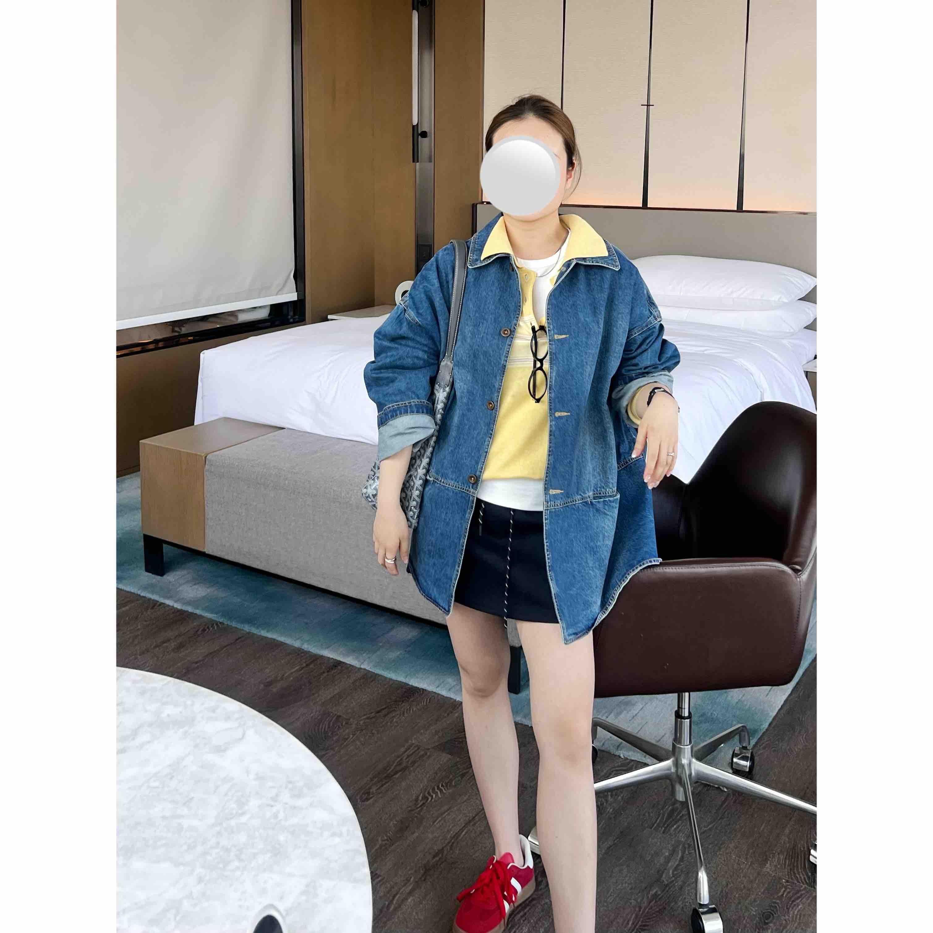 用了厚实的全棉针织布,很挺括有型。(最忌讳用软薄的做小裙子,会很没型)