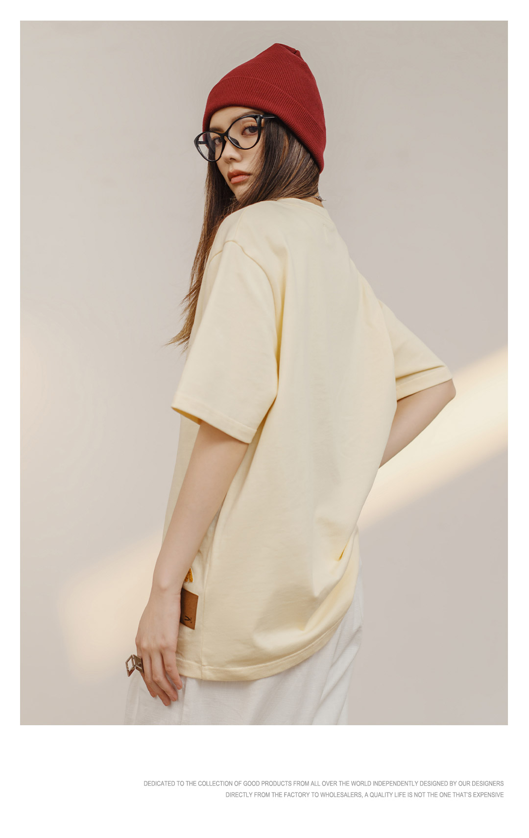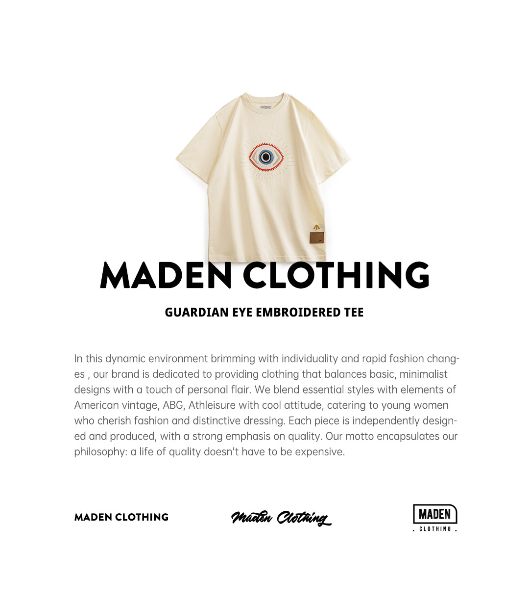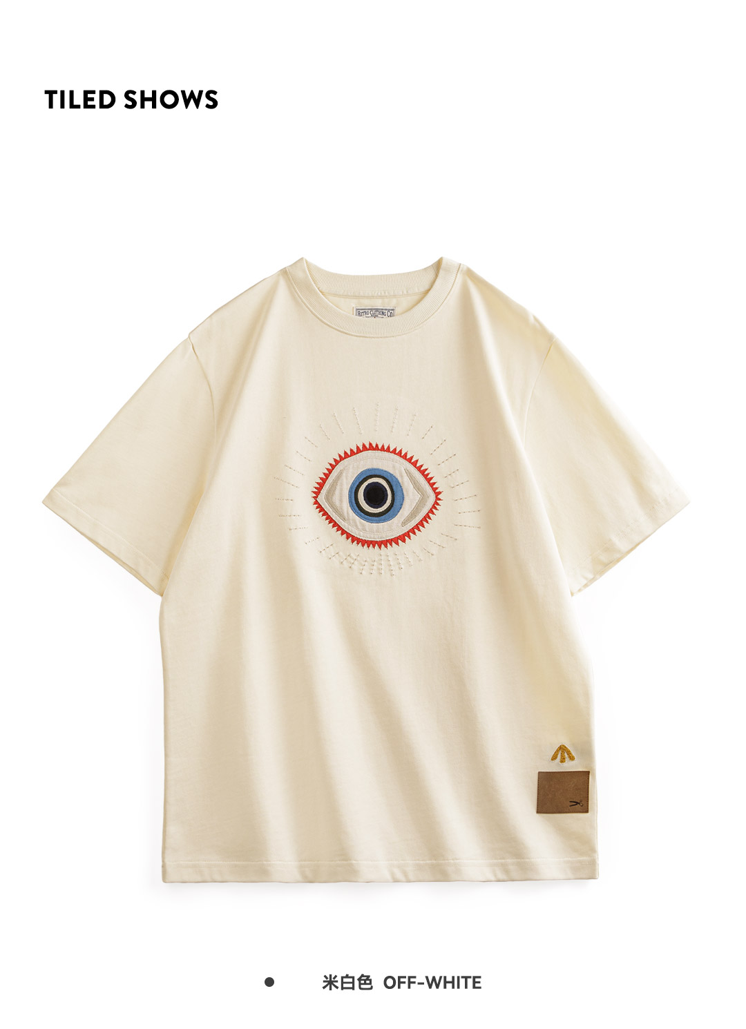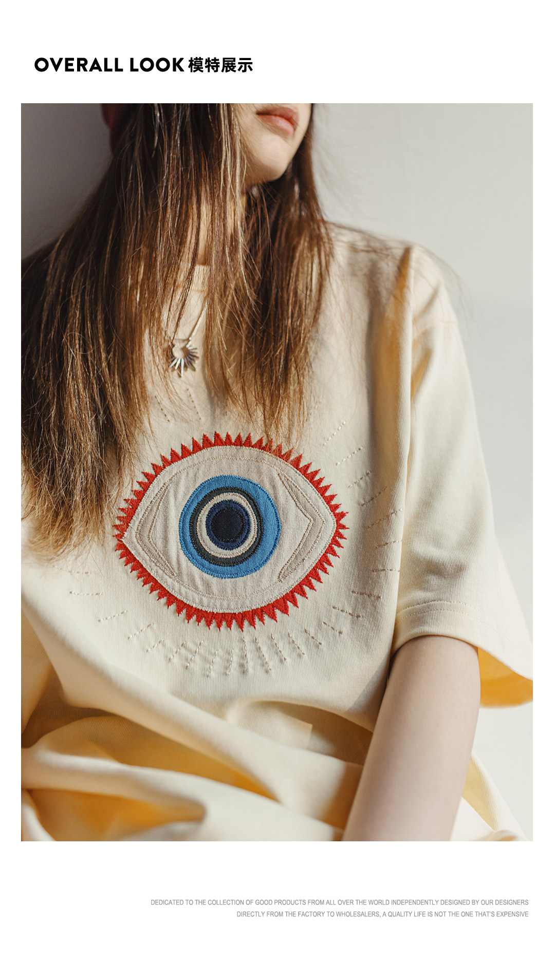 马登米白色刺绣短袖纯棉复古宽松T恤大版半袖圆领oversize上衣女