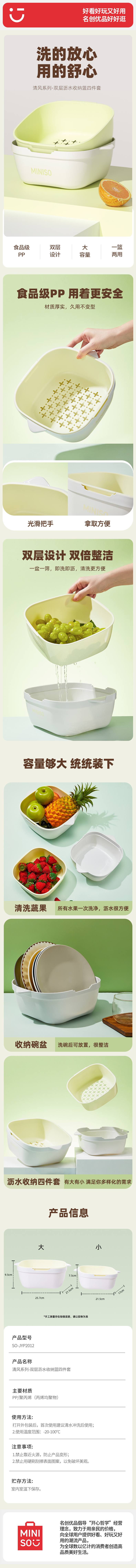 MINISO清风系列 双层沥水收纳篮四件套