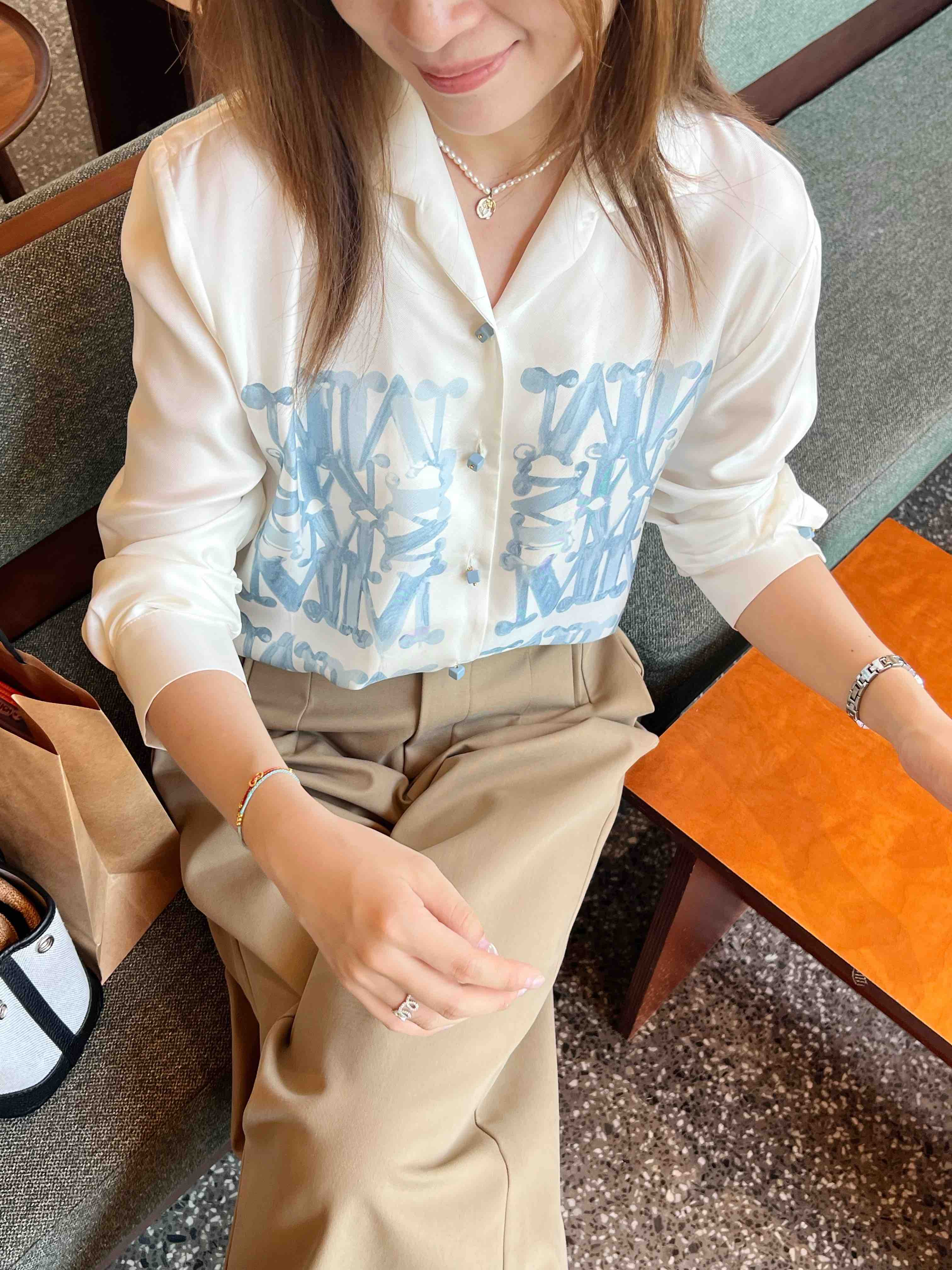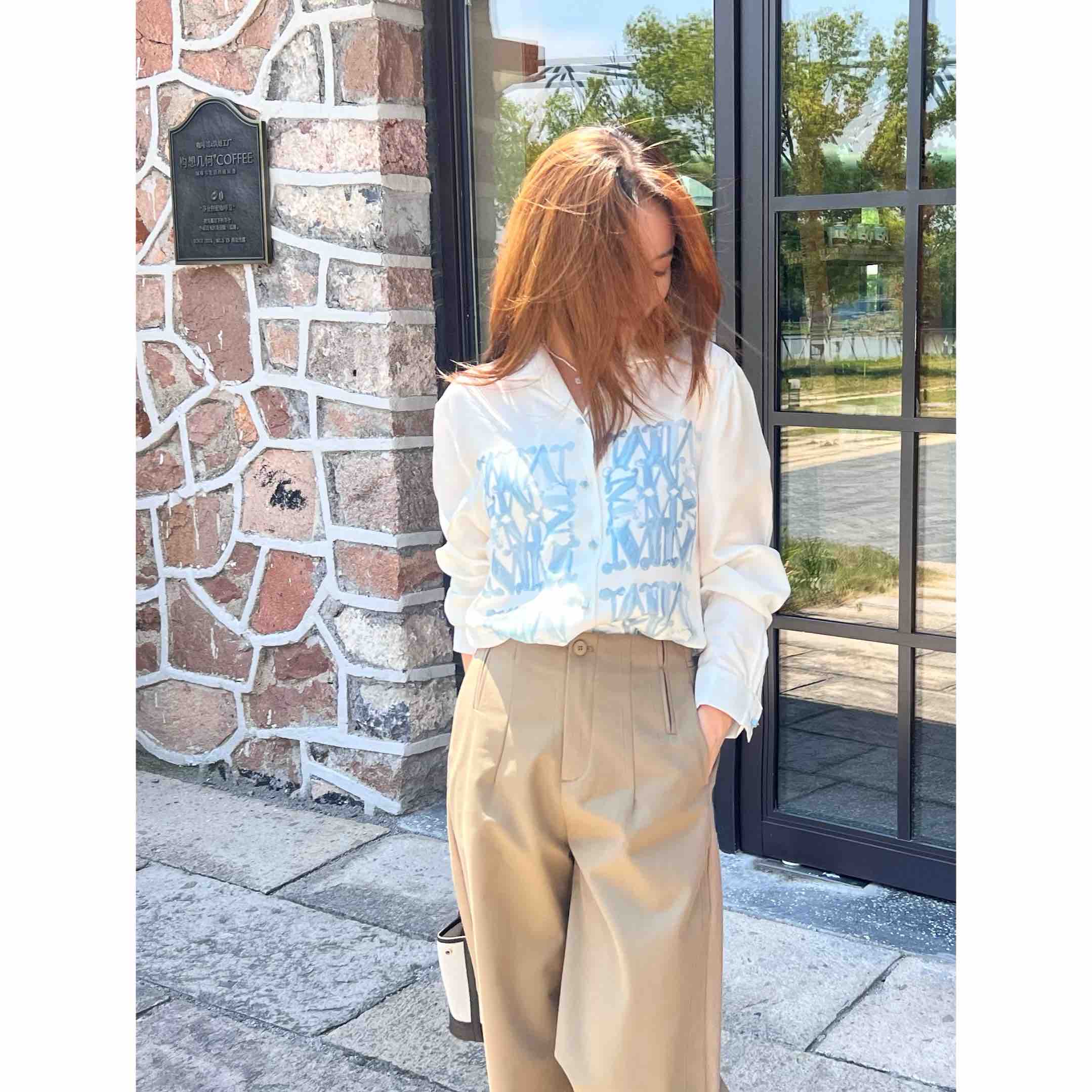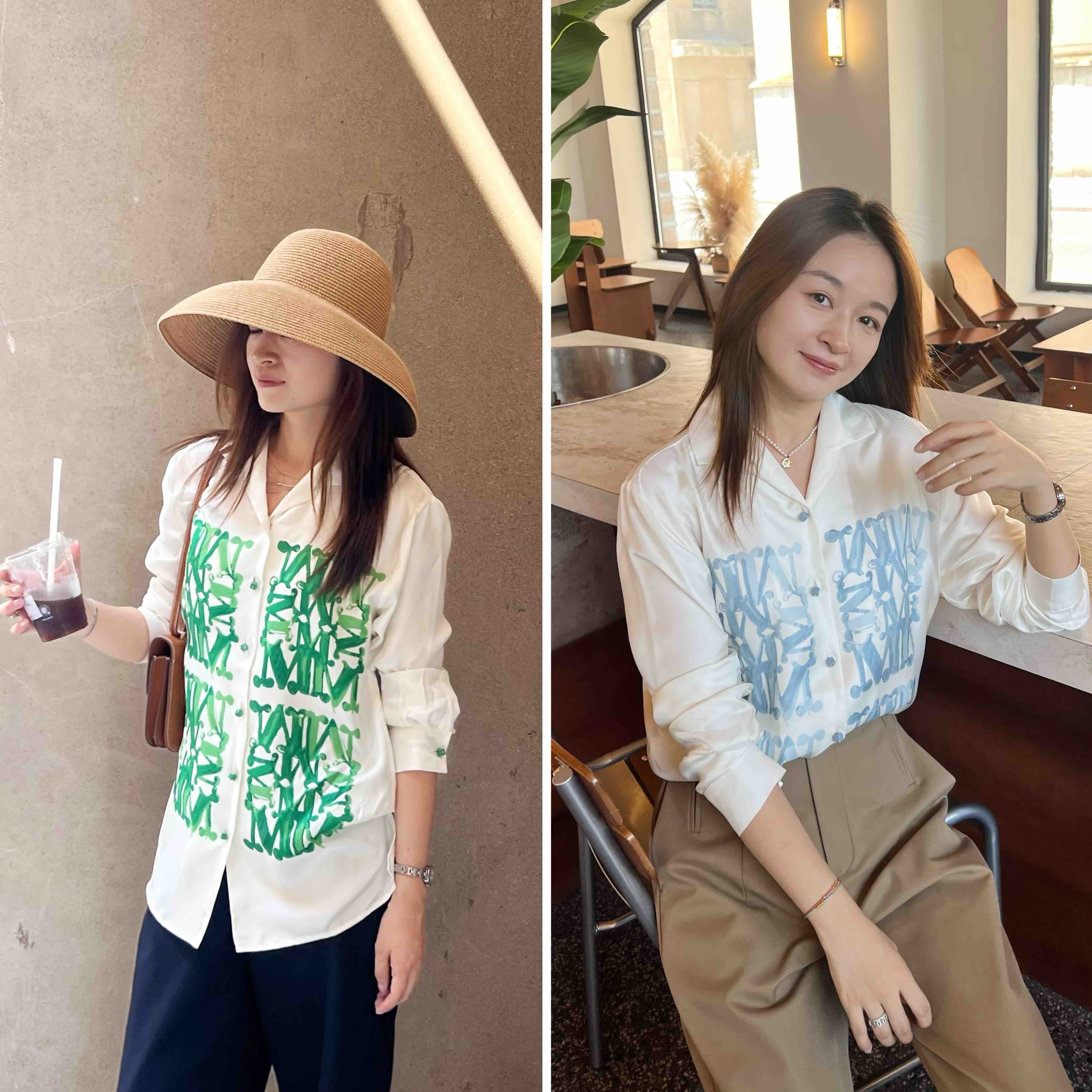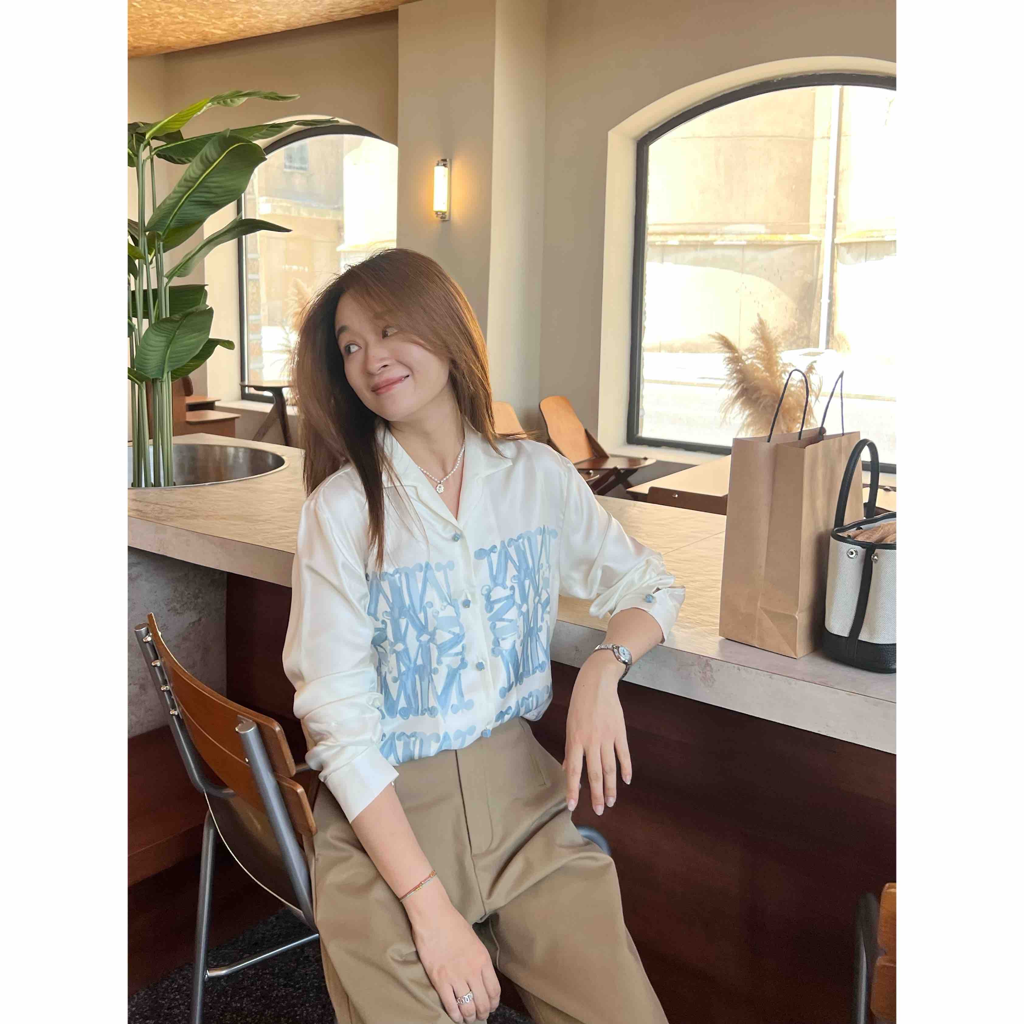 2508502 M字母印花真丝衬衫