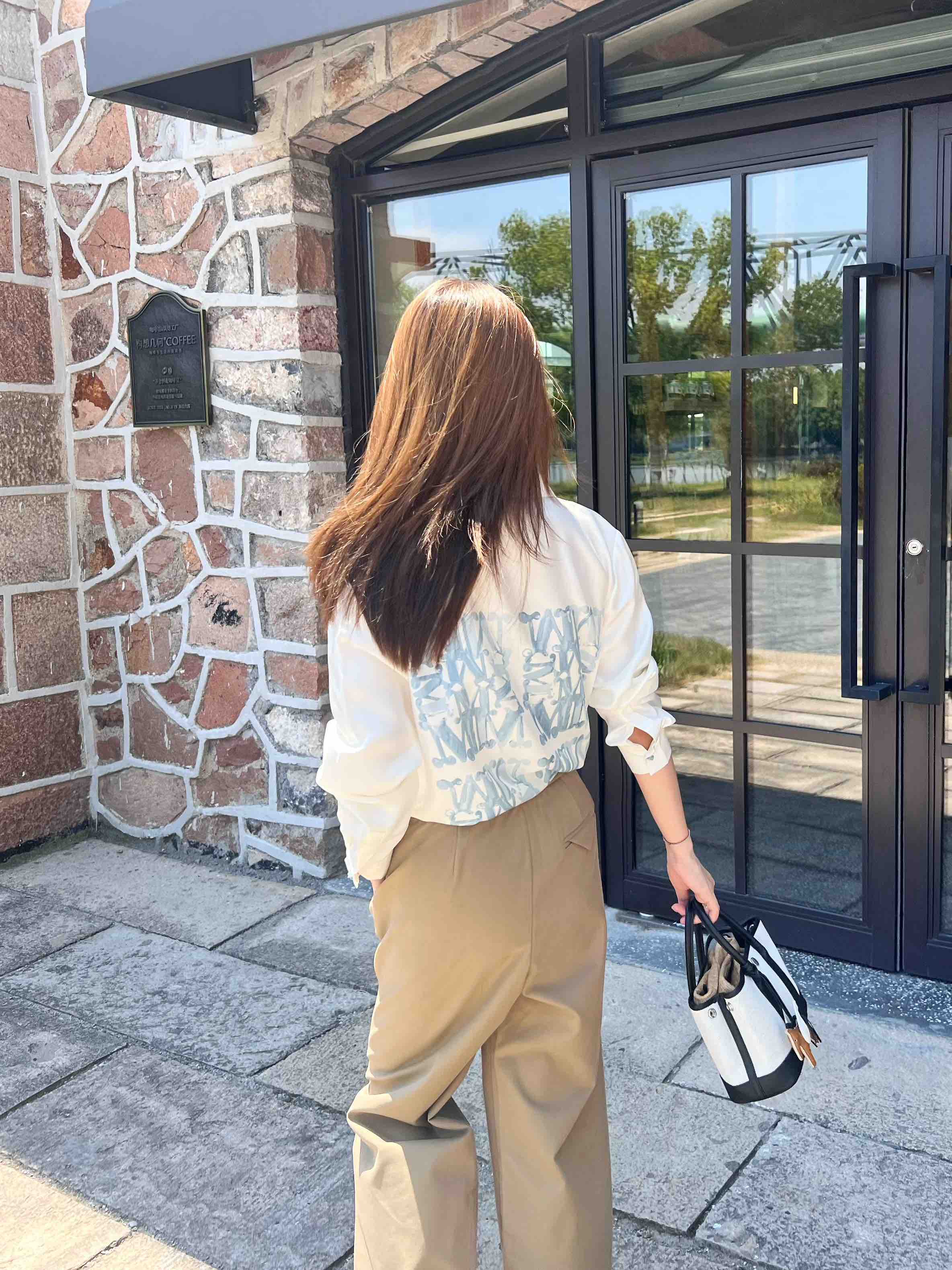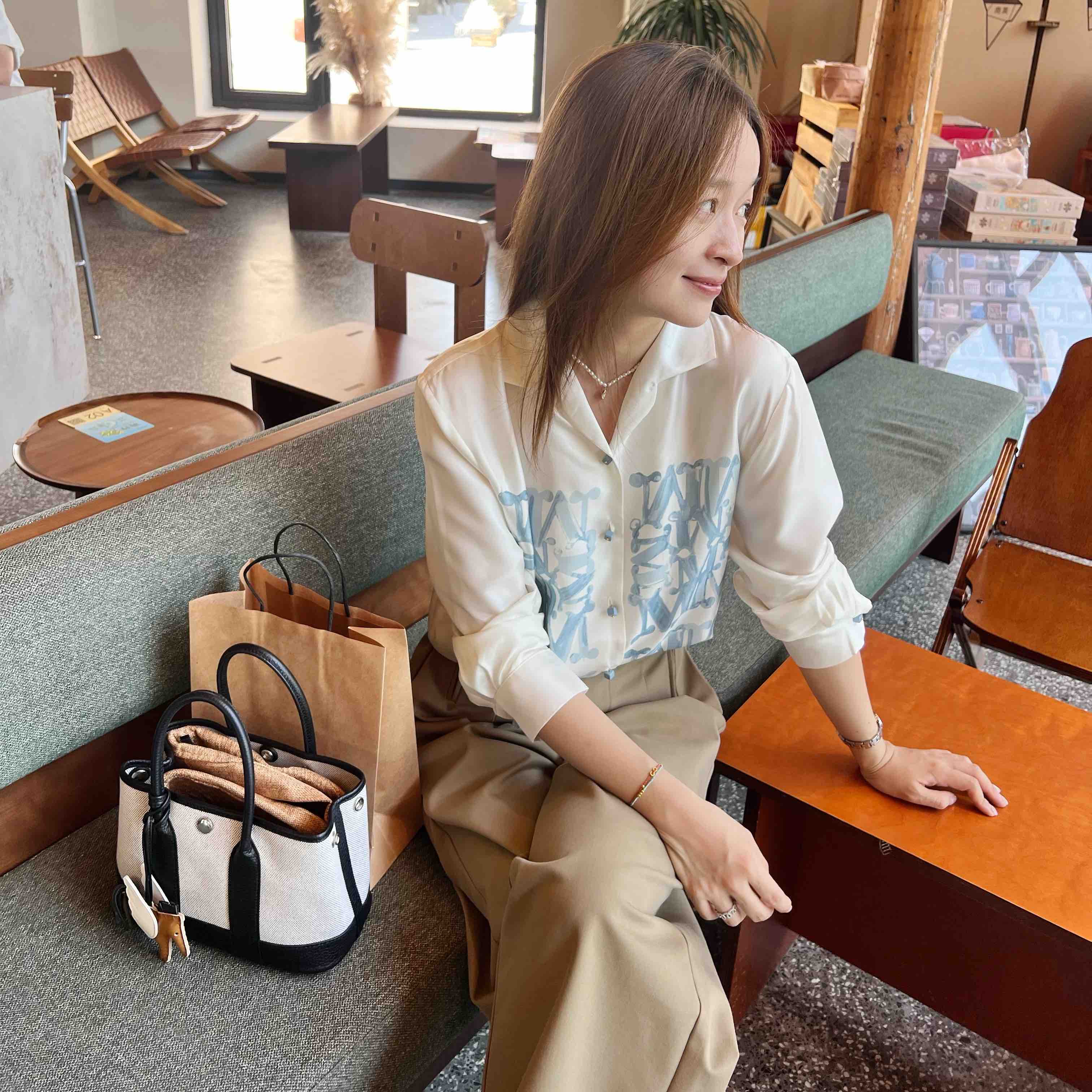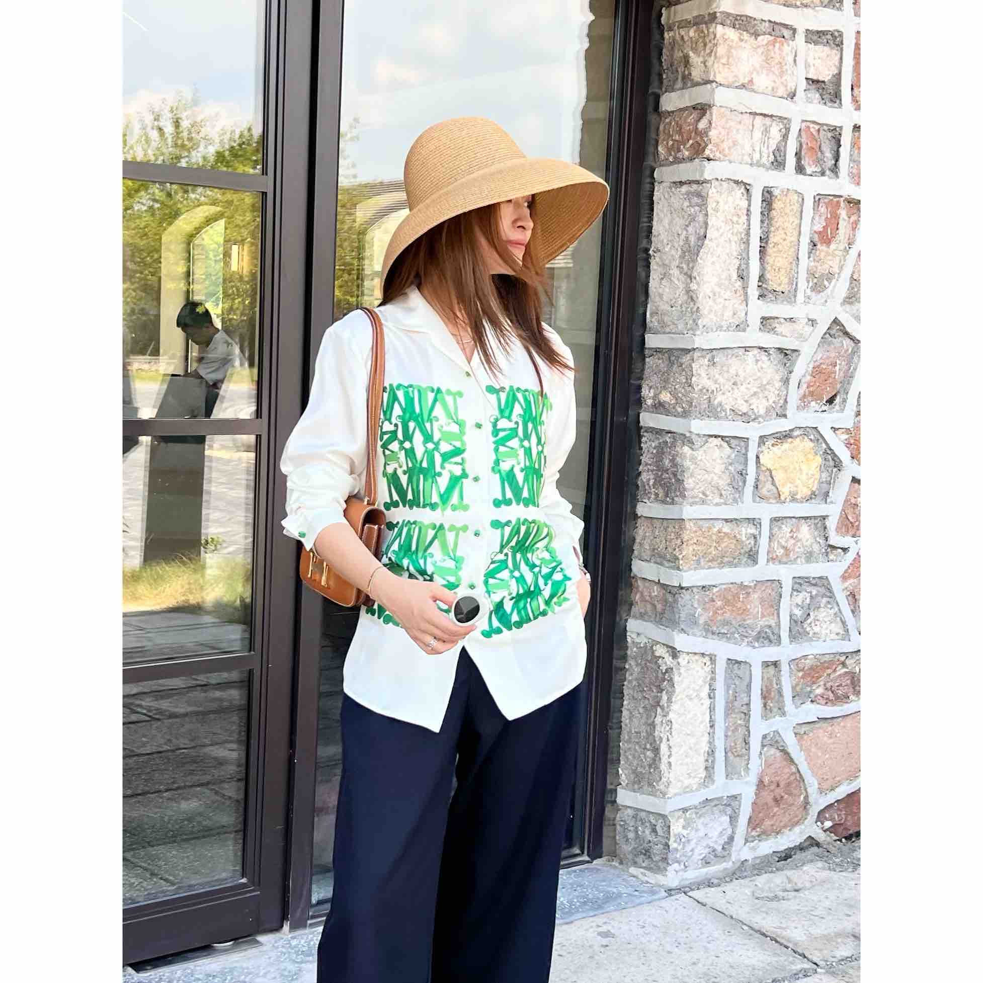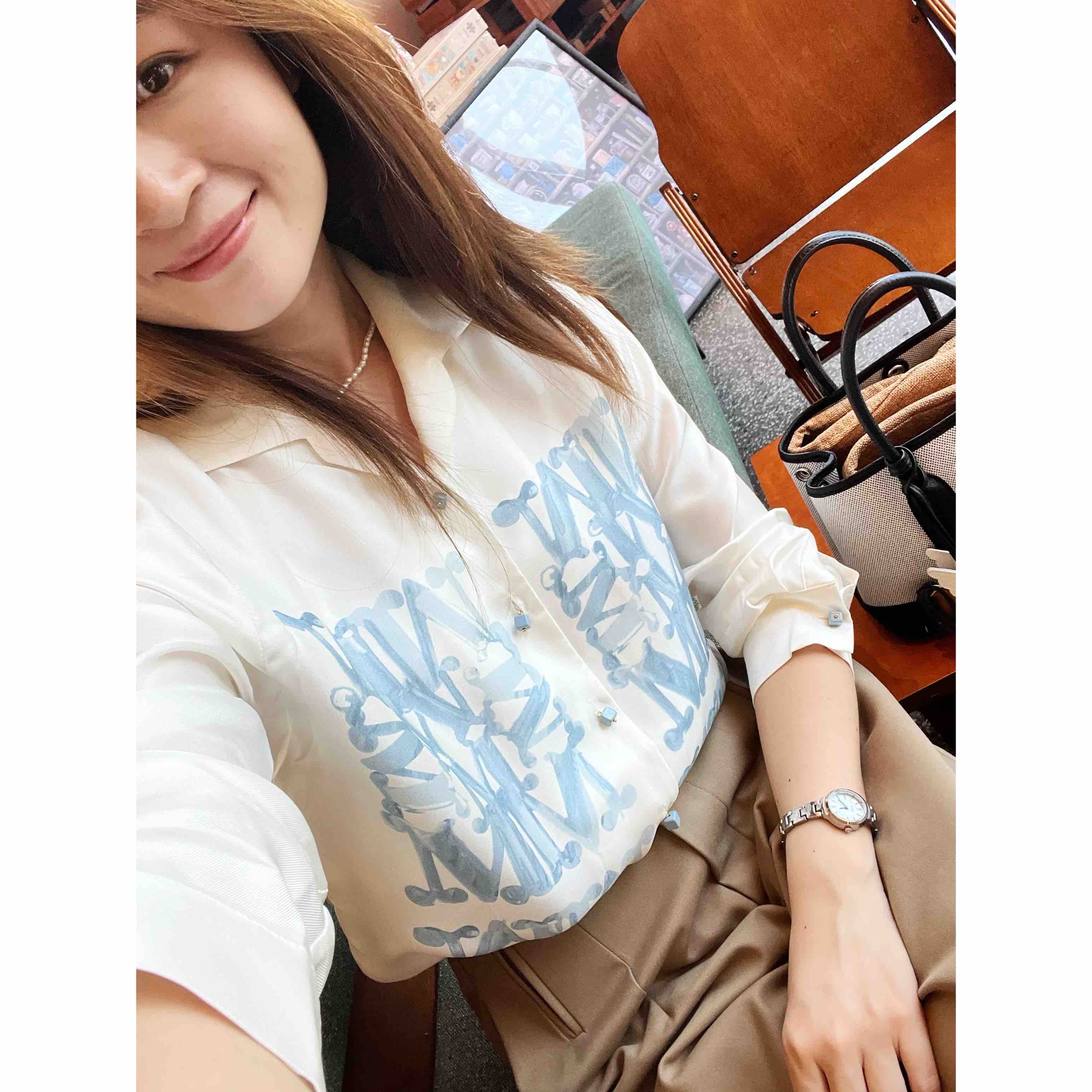 2508502 M字母印花真丝衬衫
