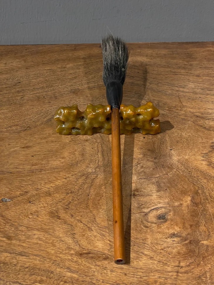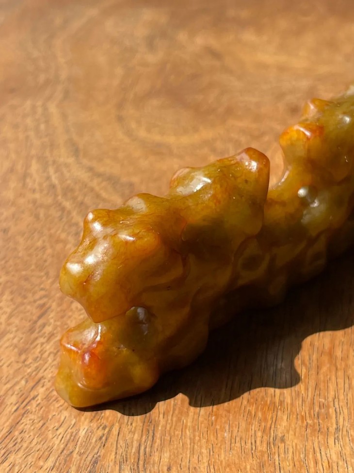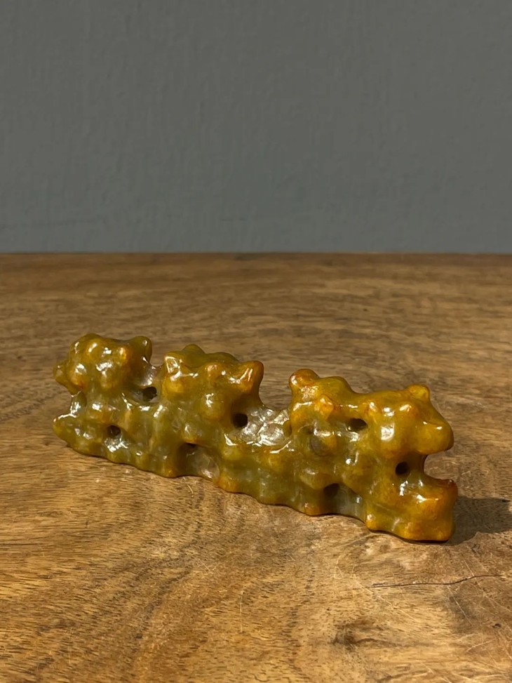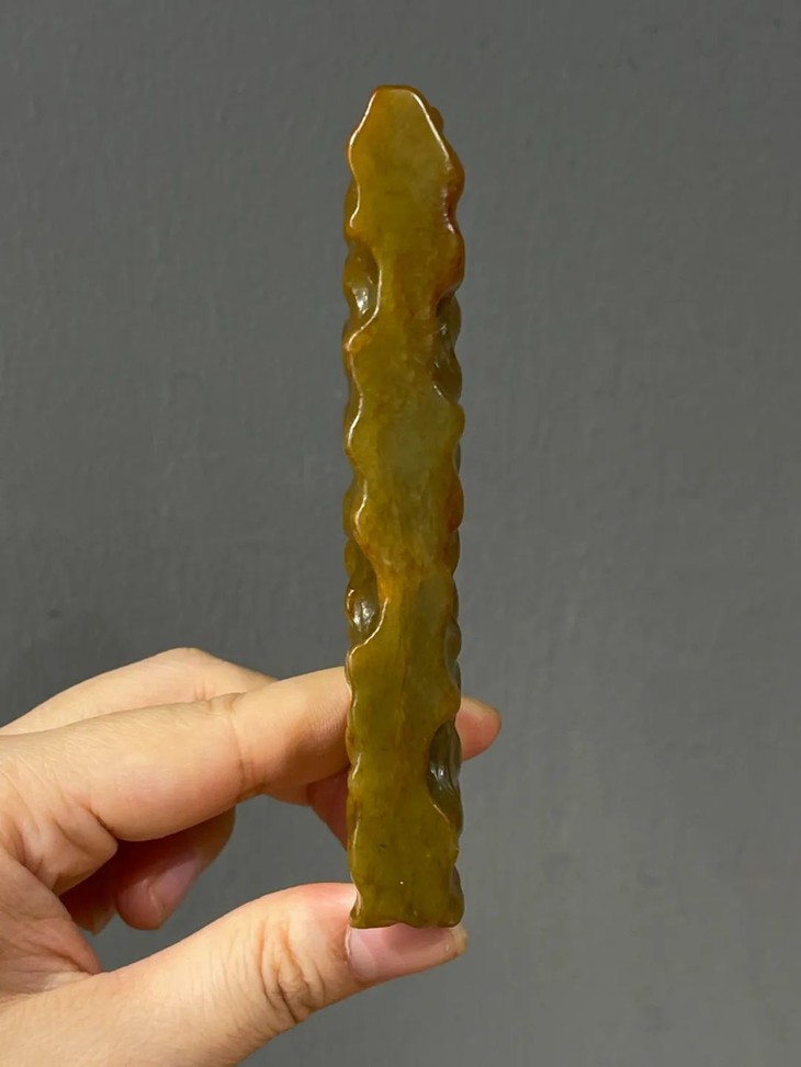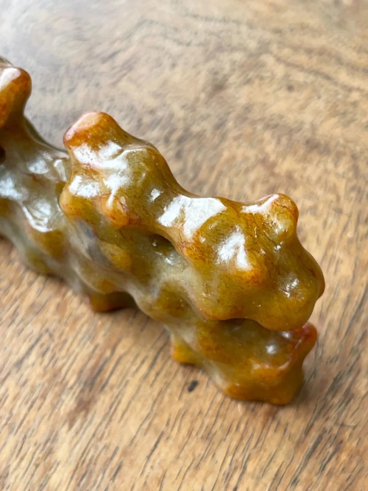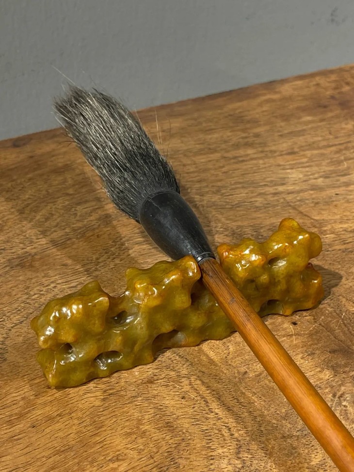 尺寸:山石玉笔搁,长:11.5厘米,宽:1.7厘米,高:3.4厘米,重量:119克。