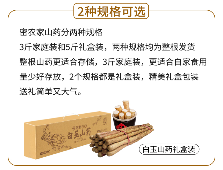 【送礼必备】密农人家白玉山药礼盒 小白嘴山药 皮薄肉糯 拍下送刮皮刀+一次性手套 3斤/5斤