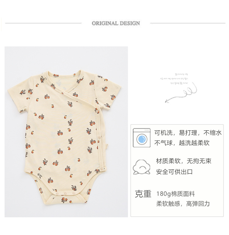 【轻薄透气 质感细腻不起球】 A类ins韩版婴幼儿棉质短袖连体衣包屁衣新款男女宝宝夏装三角哈衣爬服薄