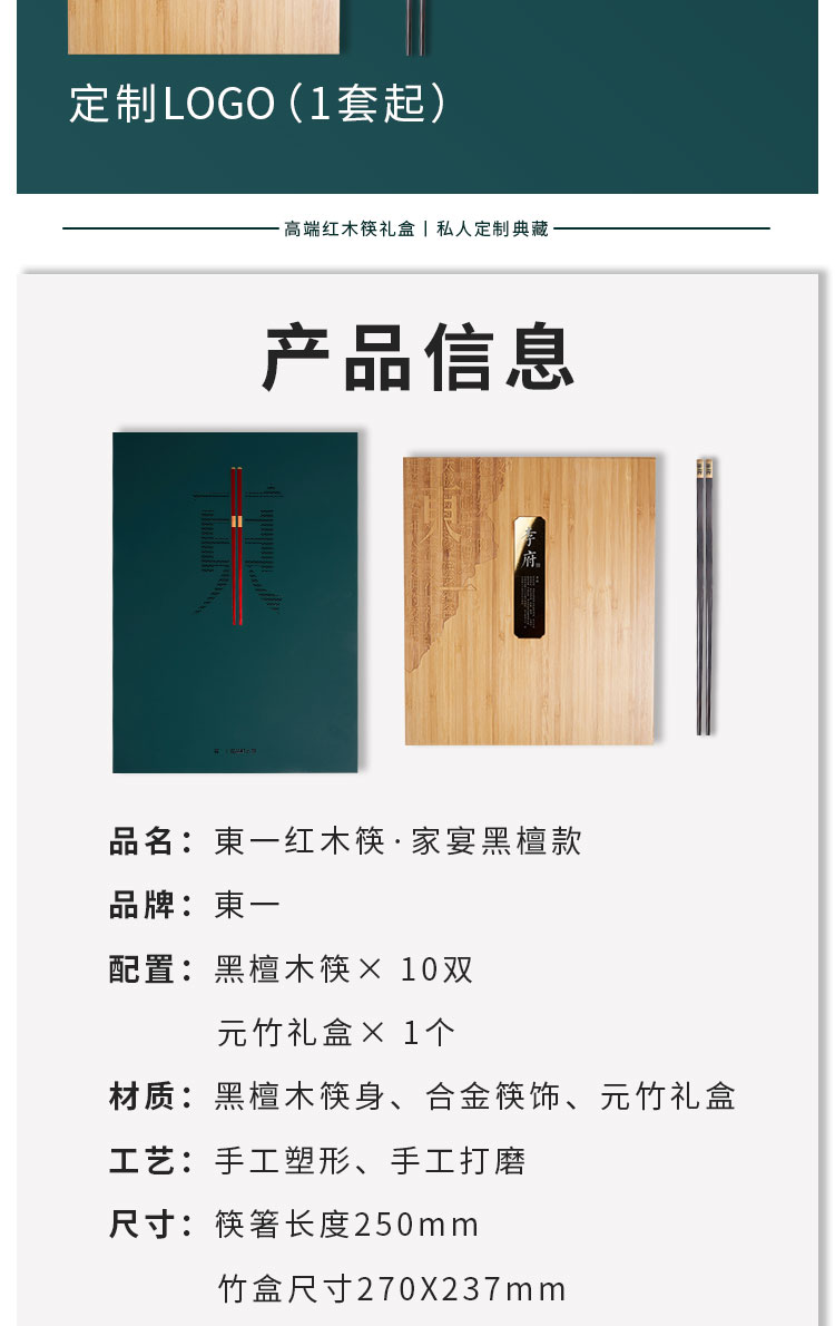 清朴堂 1套定制东一红木筷家宴精致黑檀筷子十双装乔迁结婚送领导送客户商务礼品 黑檀木 黑檀木
