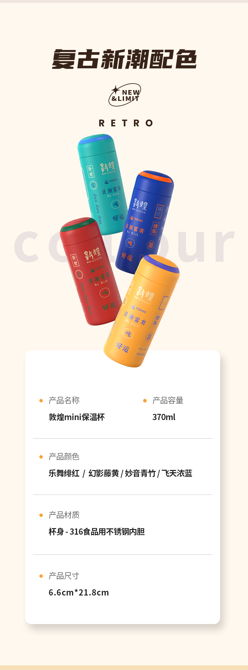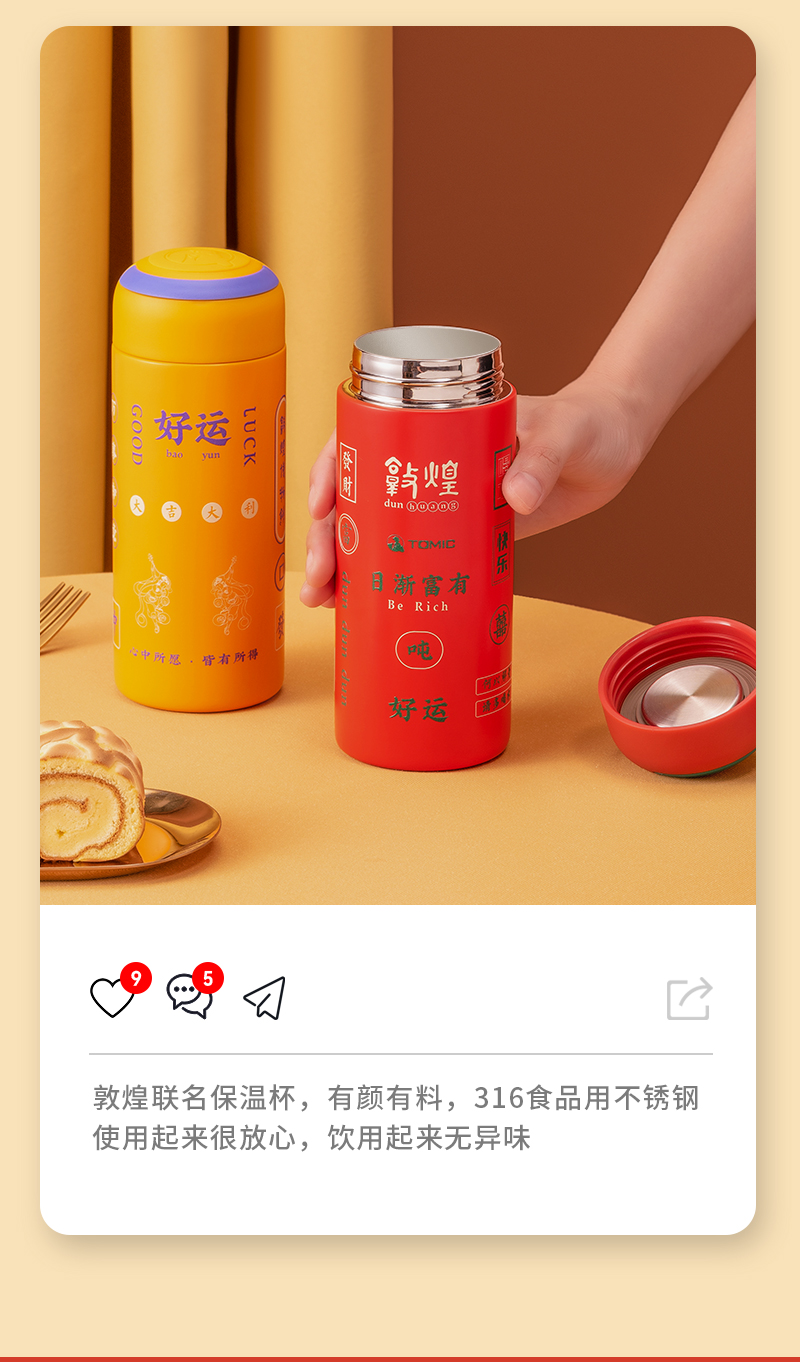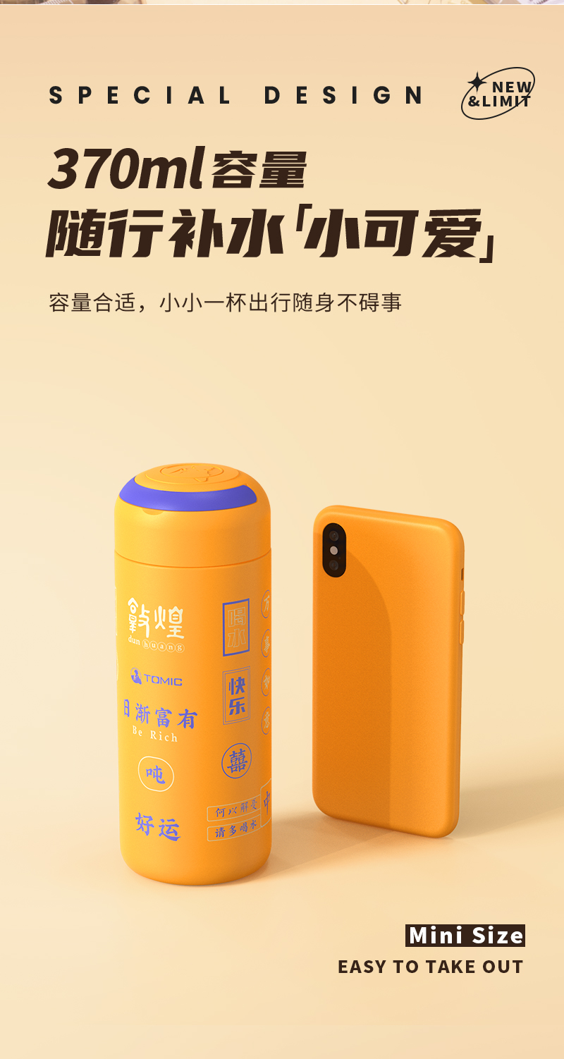 特美刻TOMIC敦煌联名胶囊杯迷你保温杯316不锈钢水杯便携可爱高颜值杯子TW60087幻影藤黄370ML