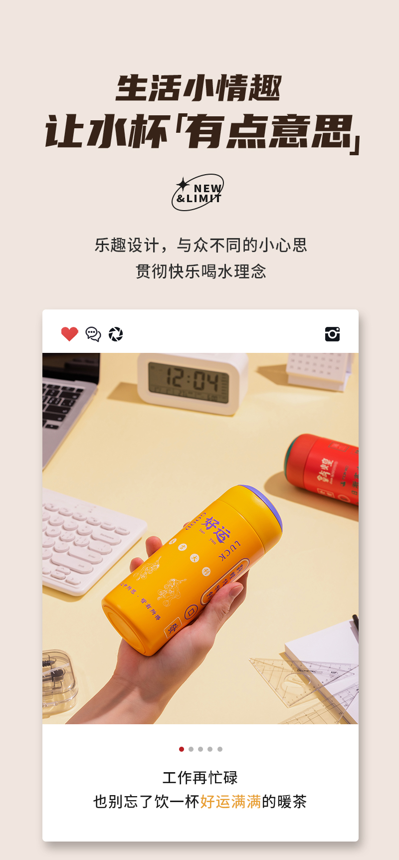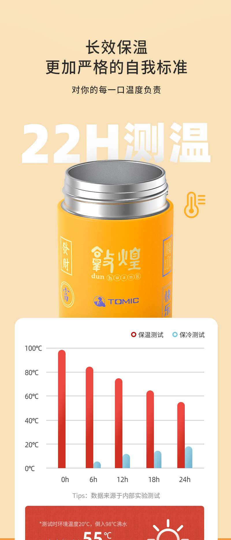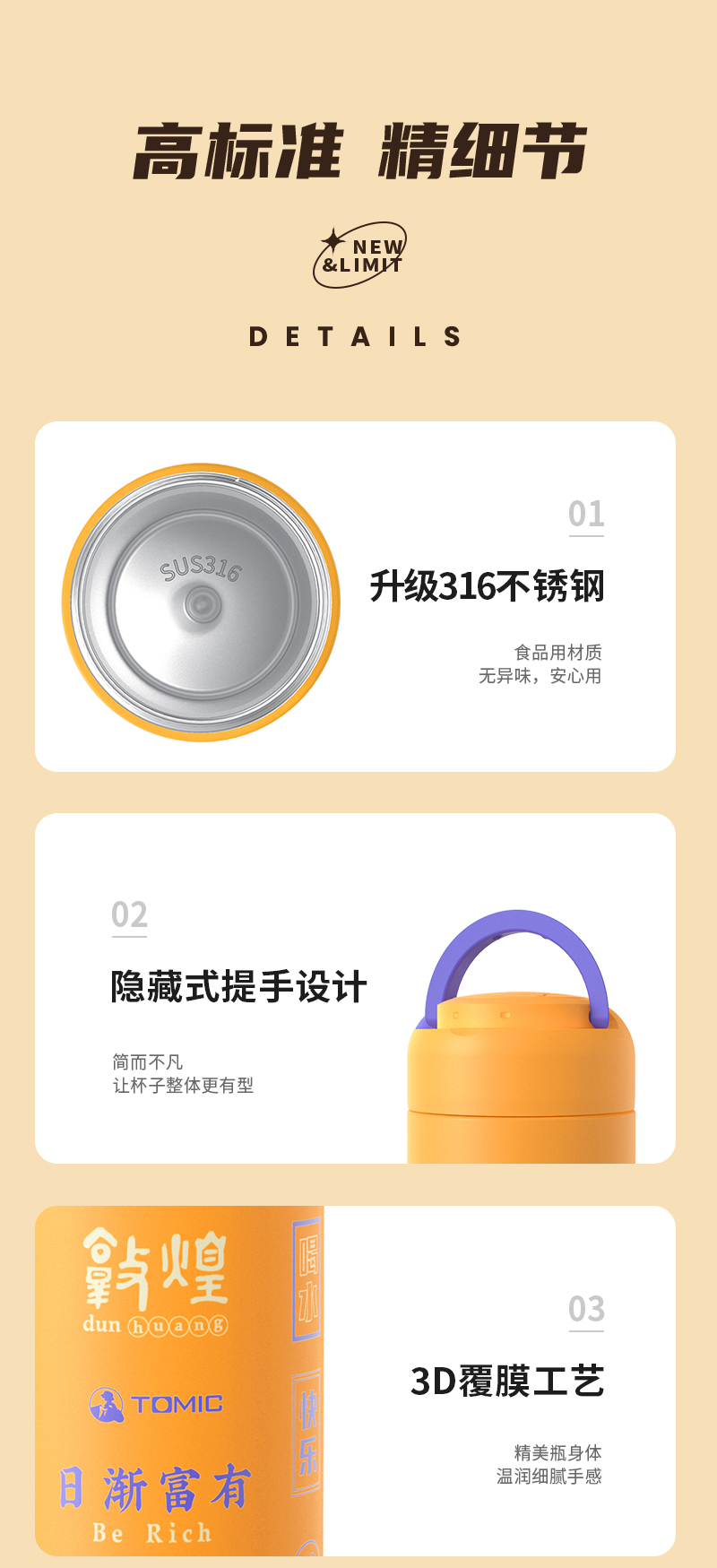 特美刻TOMIC敦煌联名胶囊杯迷你保温杯316不锈钢水杯便携可爱高颜值杯子TW60087幻影藤黄370ML