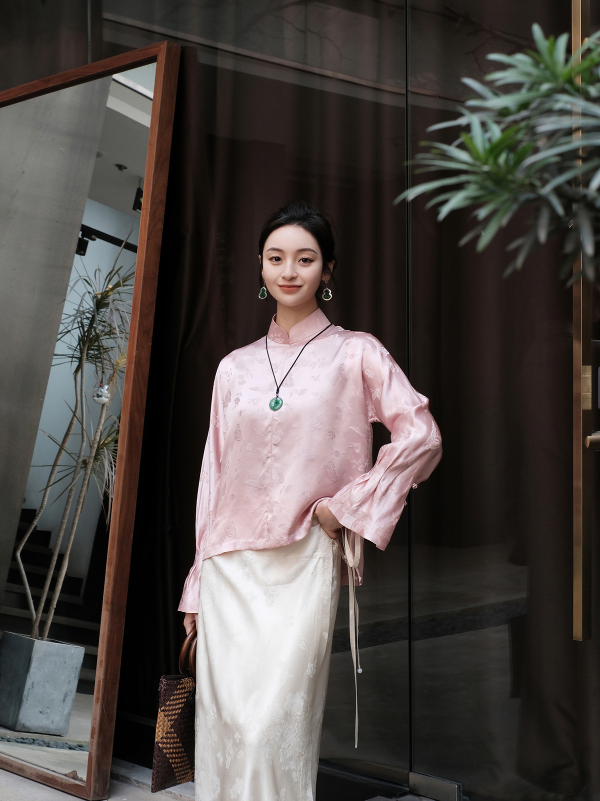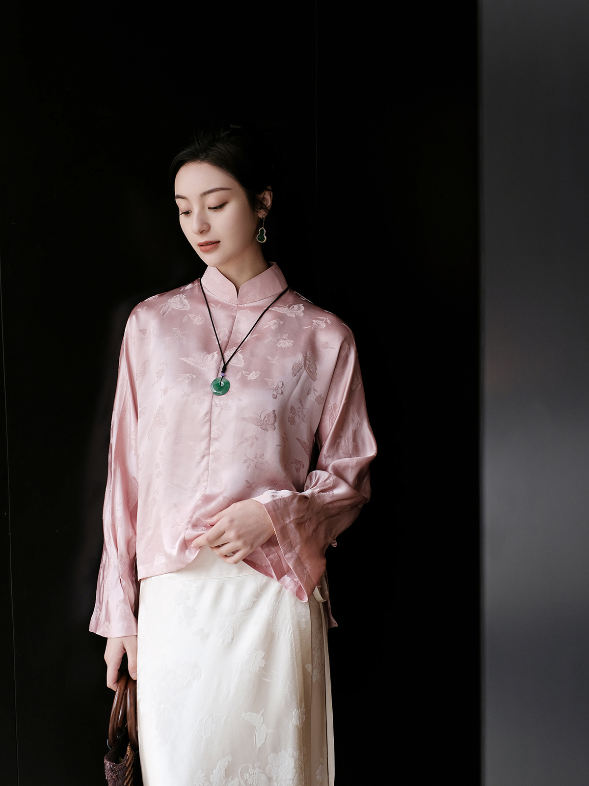 盛唐婧 |淡翠绿国风提花上衣[特价品]