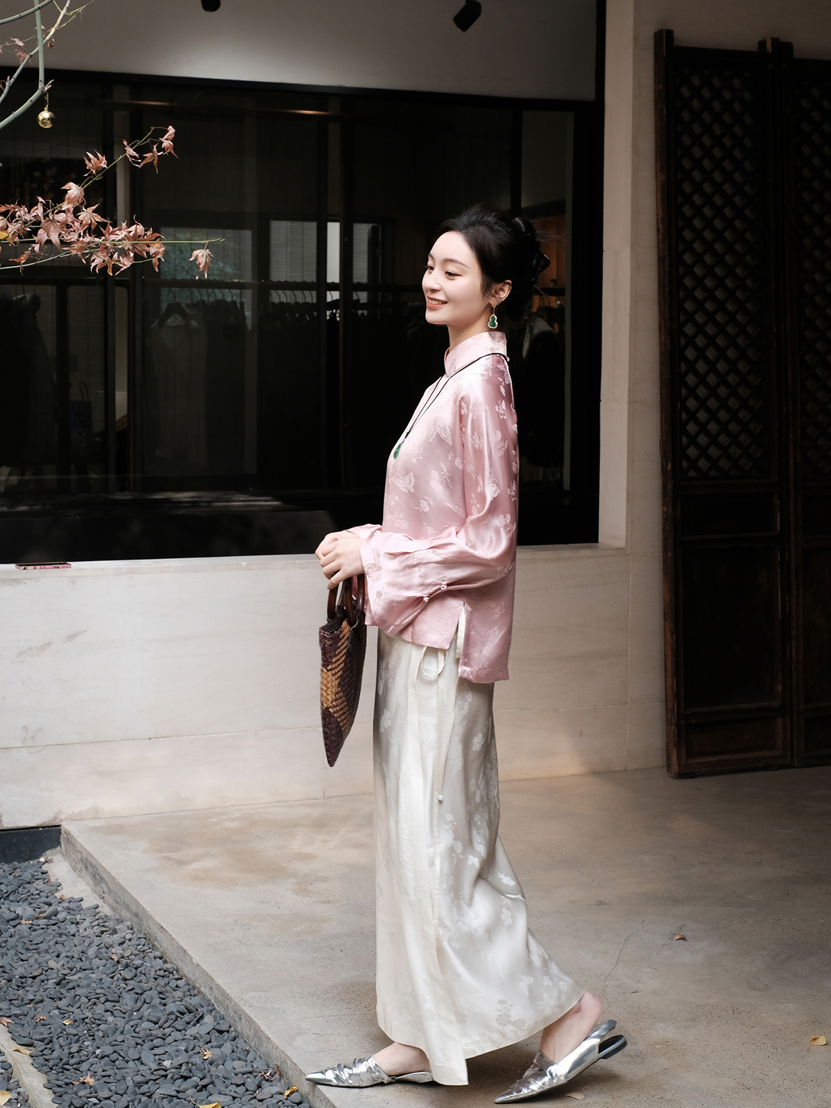 盛唐婧 |新中式丝绒微喇裤黑色