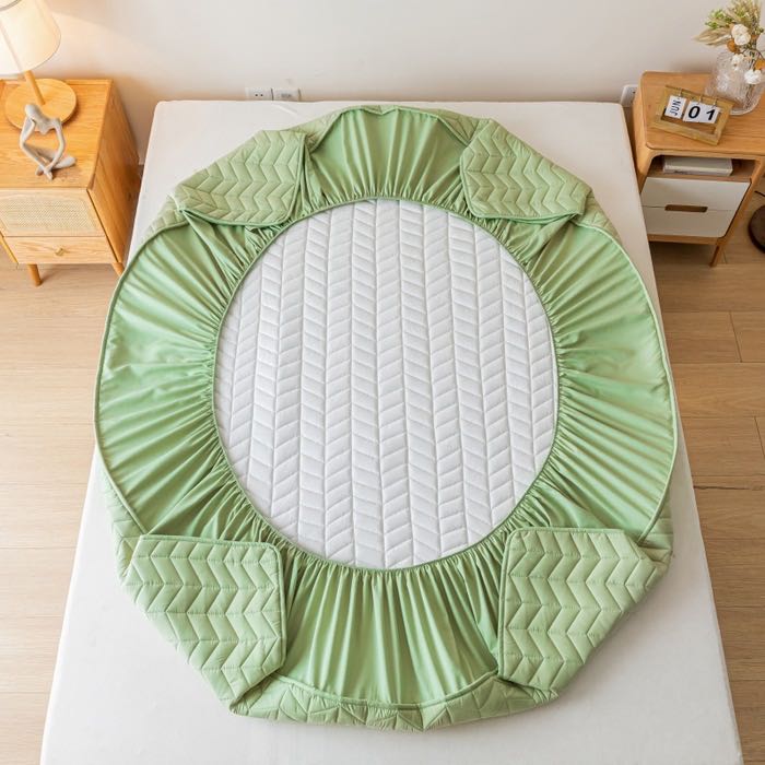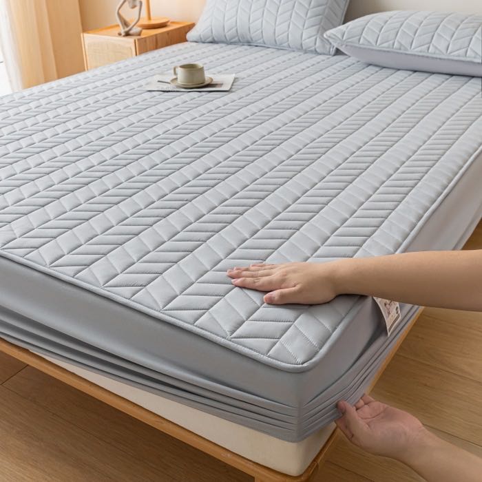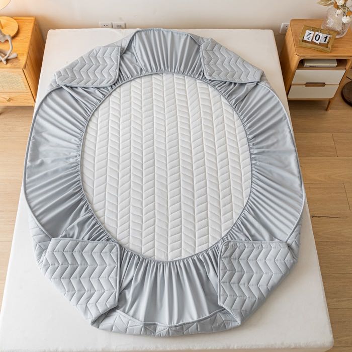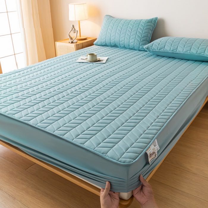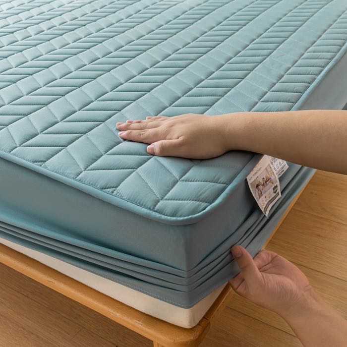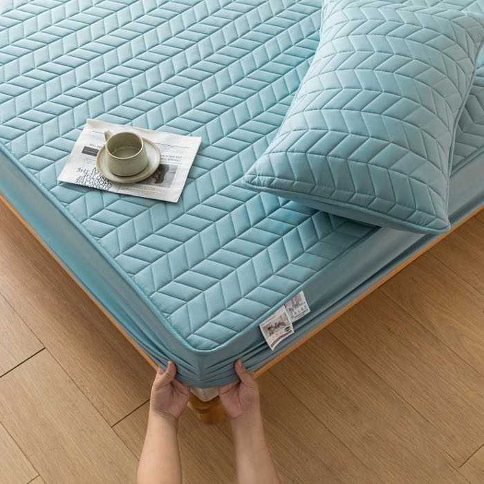 ▶酒店床笠能很好的保护床垫,绗绣定位大豆夹棉层设计,让睡眠更加舒适,一年四季特别推荐款,用大豆夹棉床笠包住床垫上面直接铺利落清爽!你几千几万的席梦思床垫就靠我来守护啦!