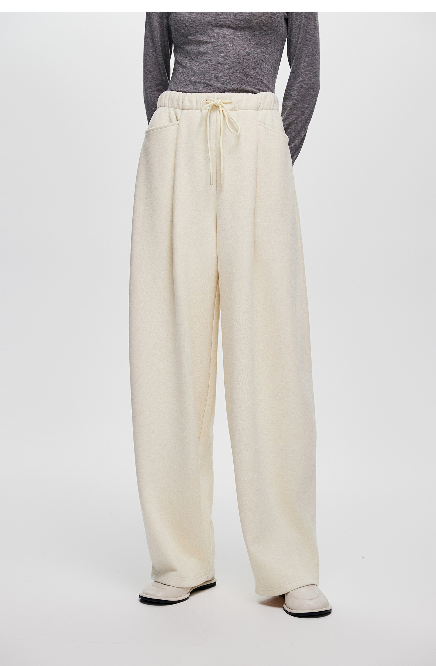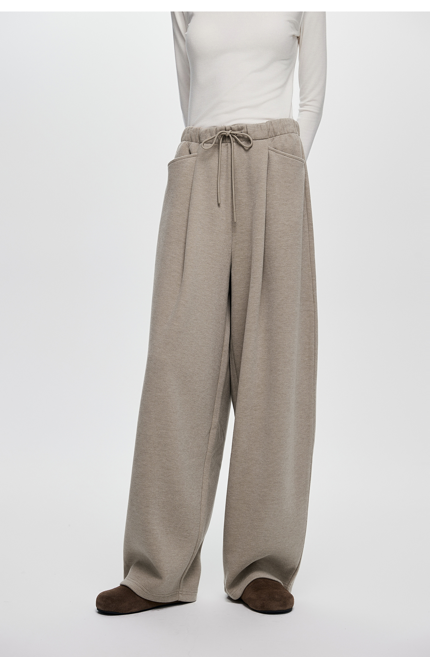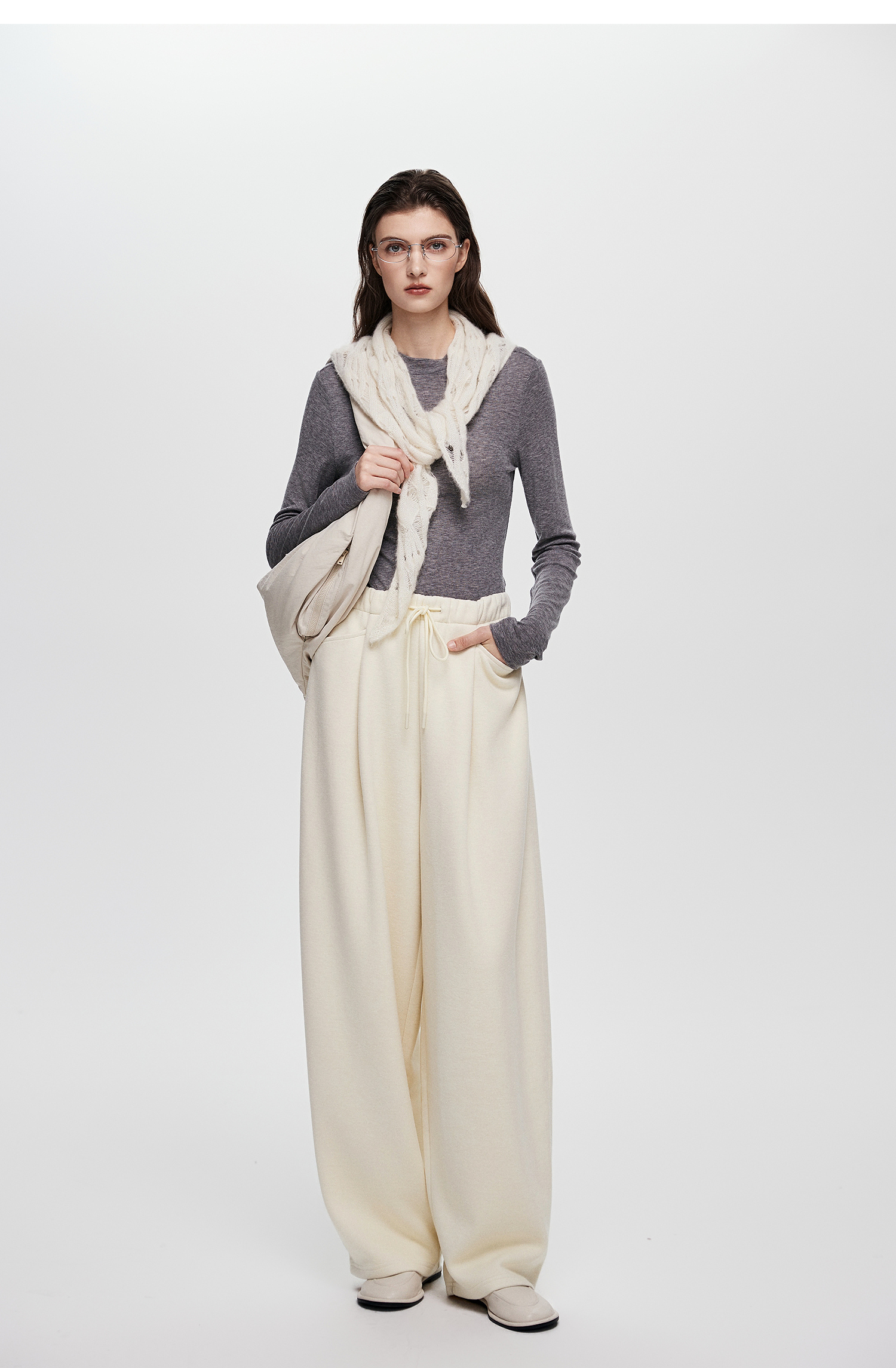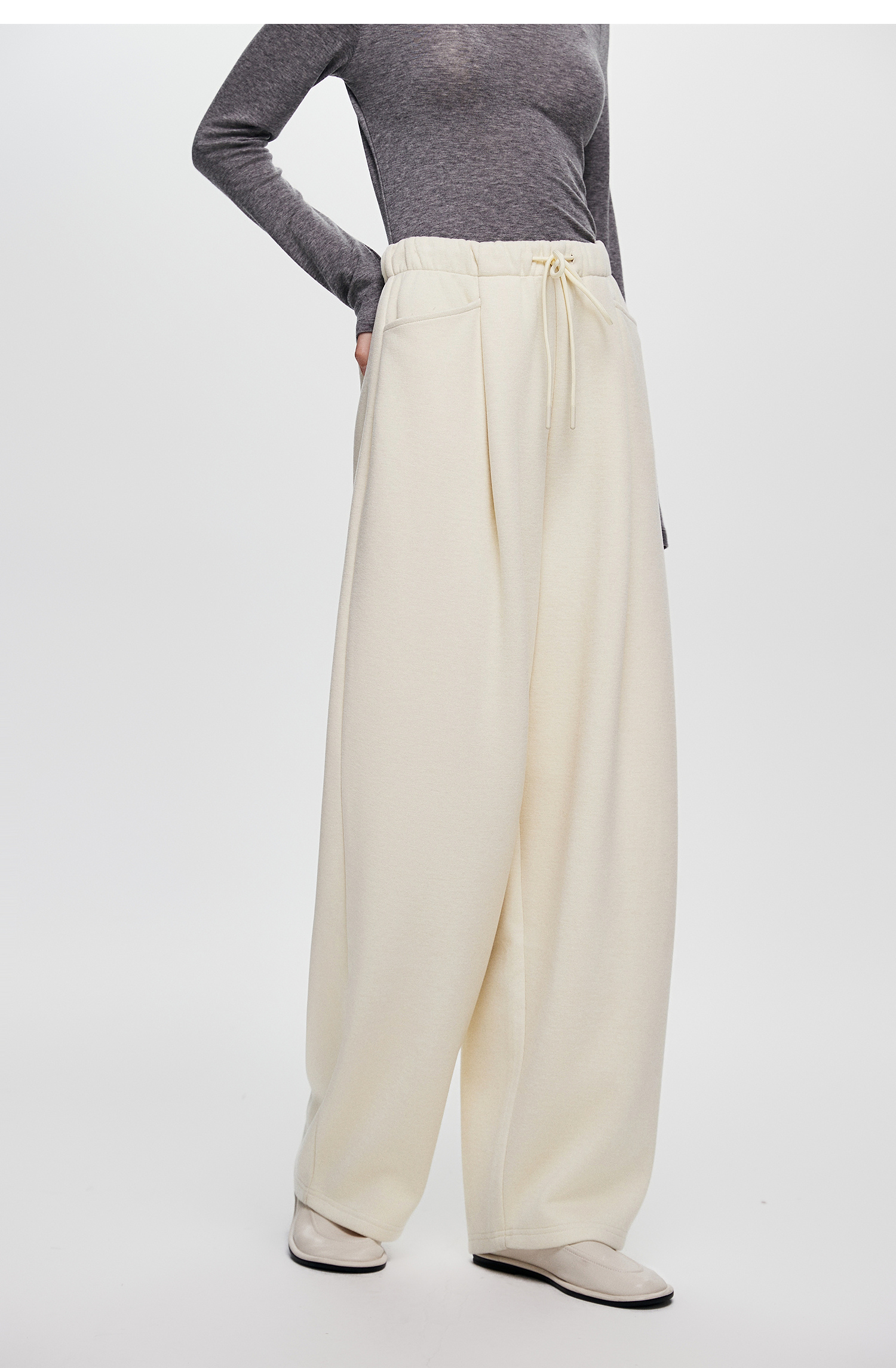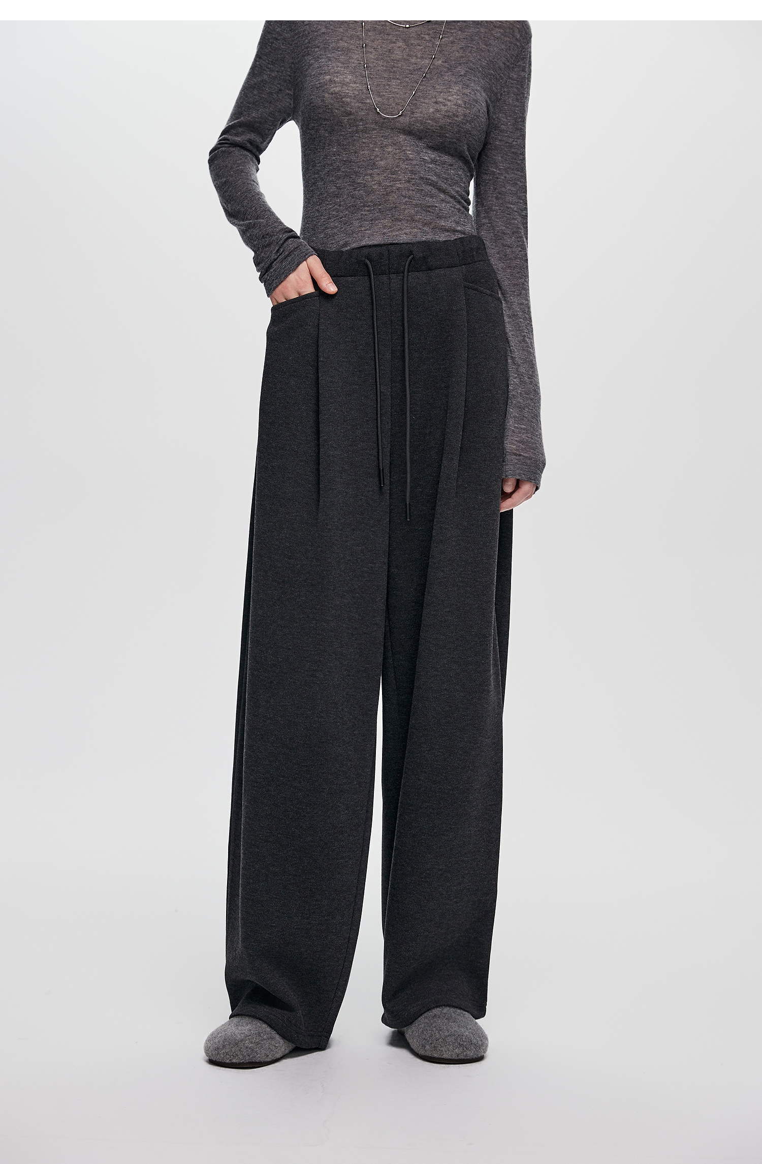 棉仓366618002-【弯刀裤】醋酸羊毛针织休闲裤女25秋新品微弧显瘦抽绳长裤