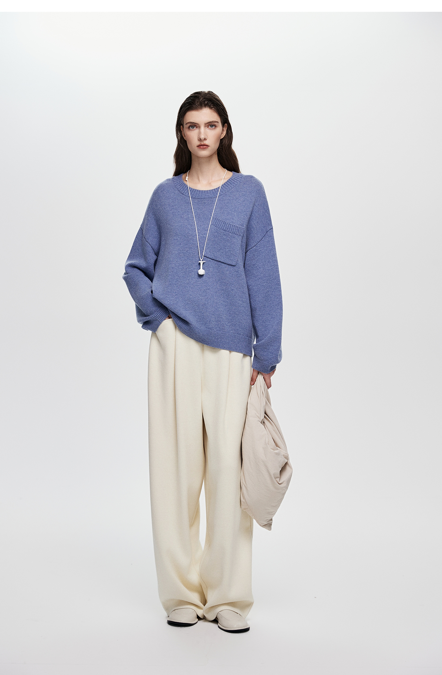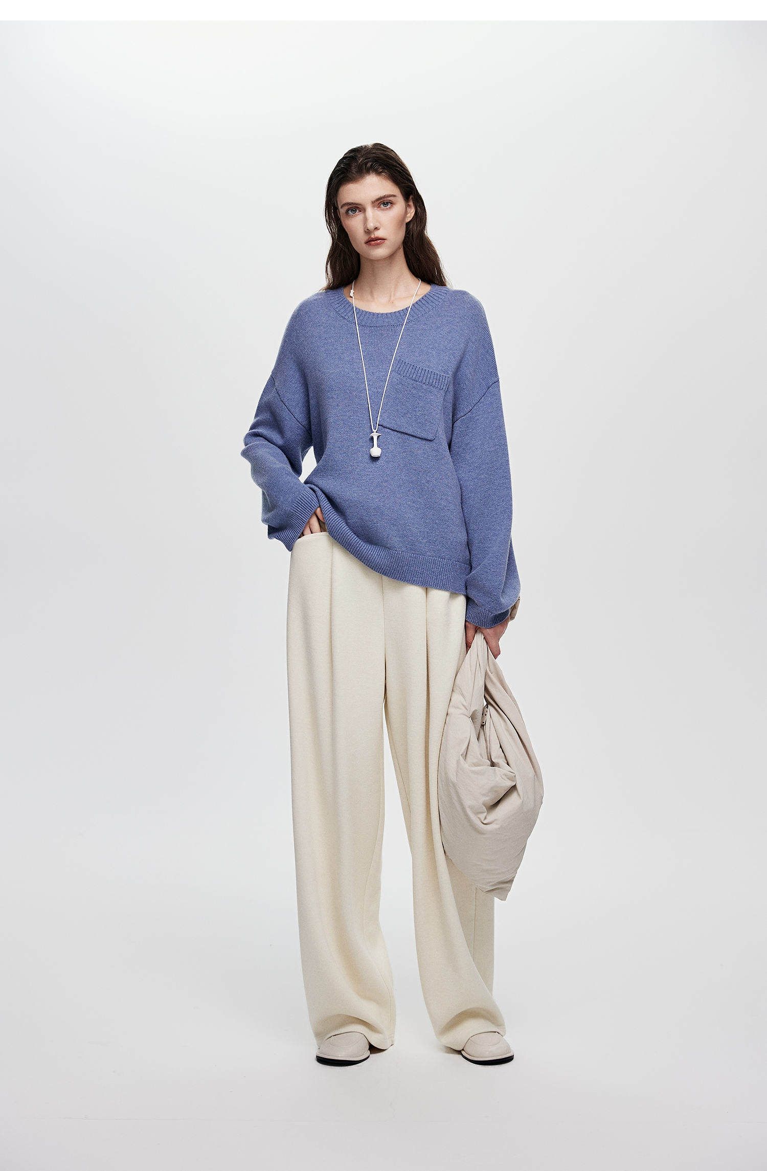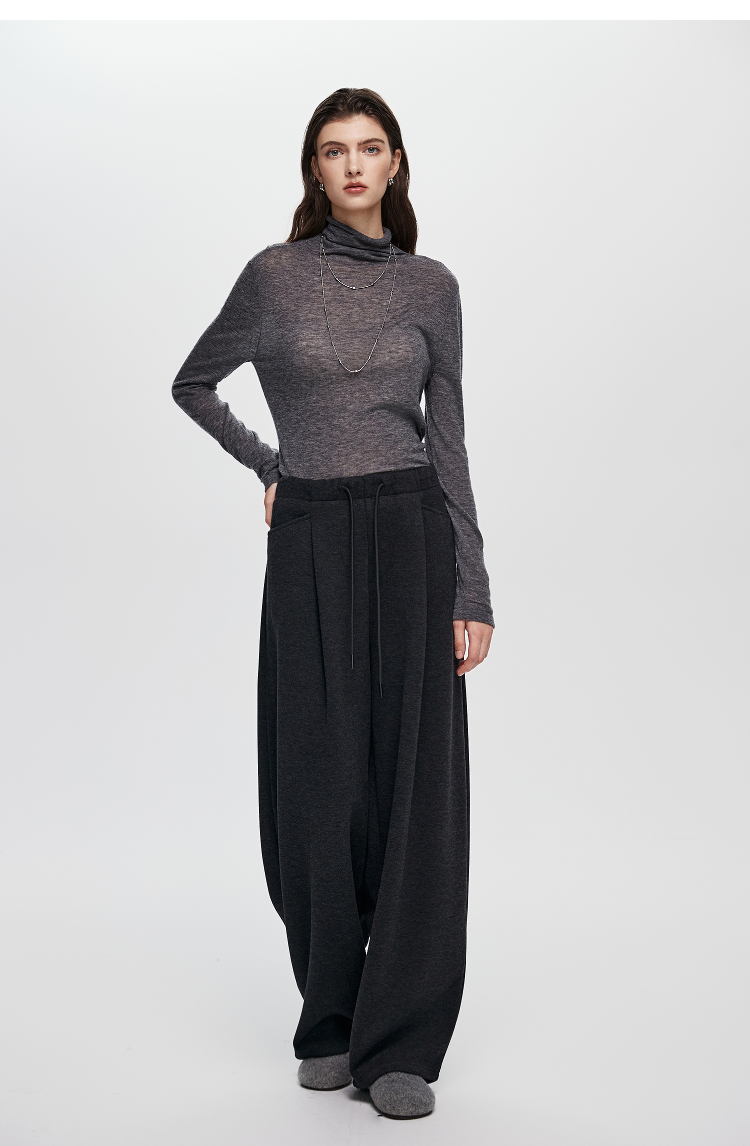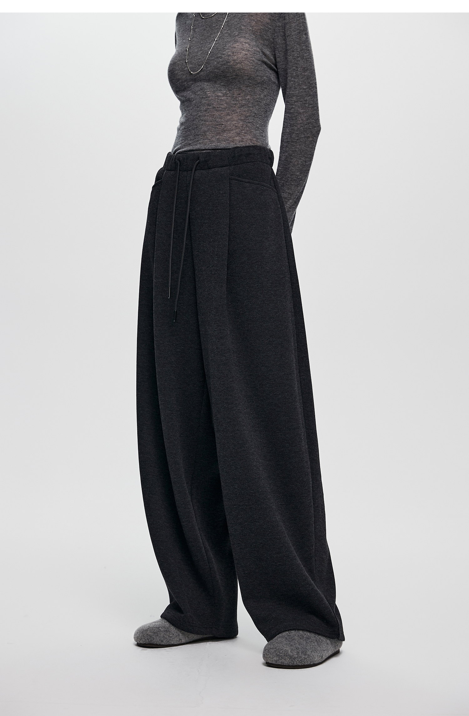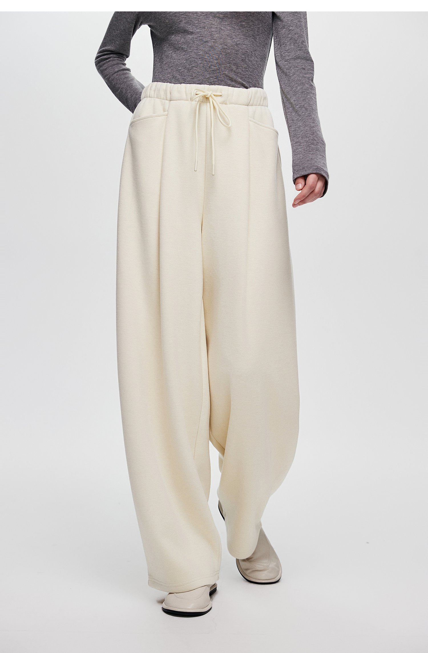 棉仓366618002-【弯刀裤】醋酸羊毛针织休闲裤女25秋新品微弧显瘦抽绳长裤
