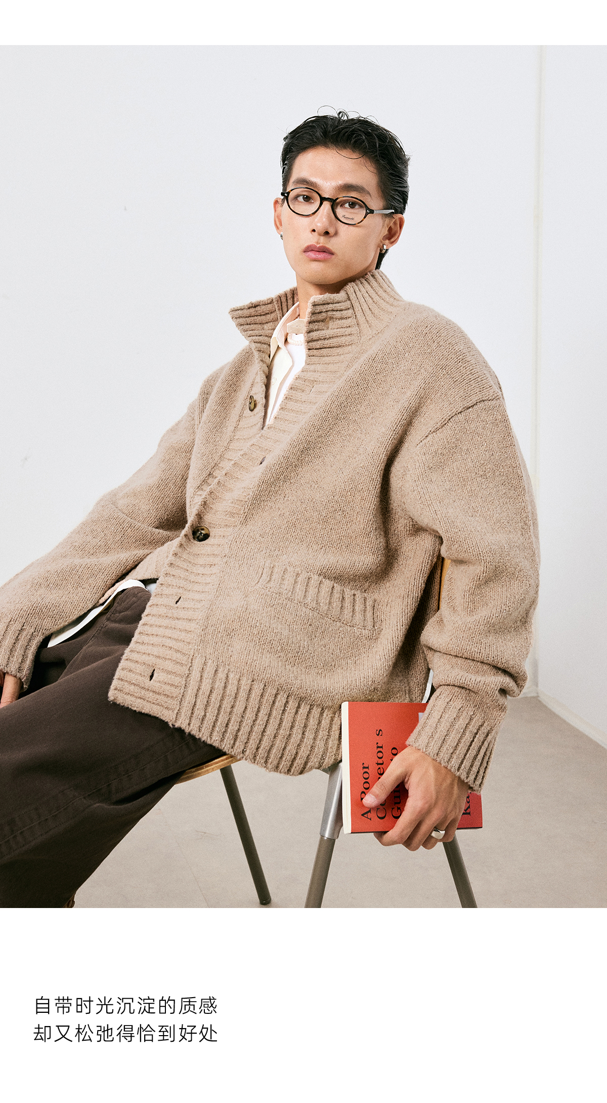 棉仓3671026004-【塞纳河畔】花纱针织大开衫含羊毛宽松松弛毛衣外套