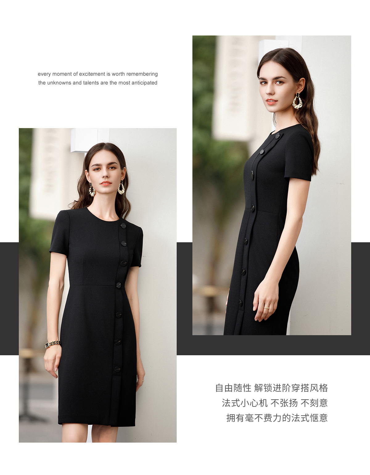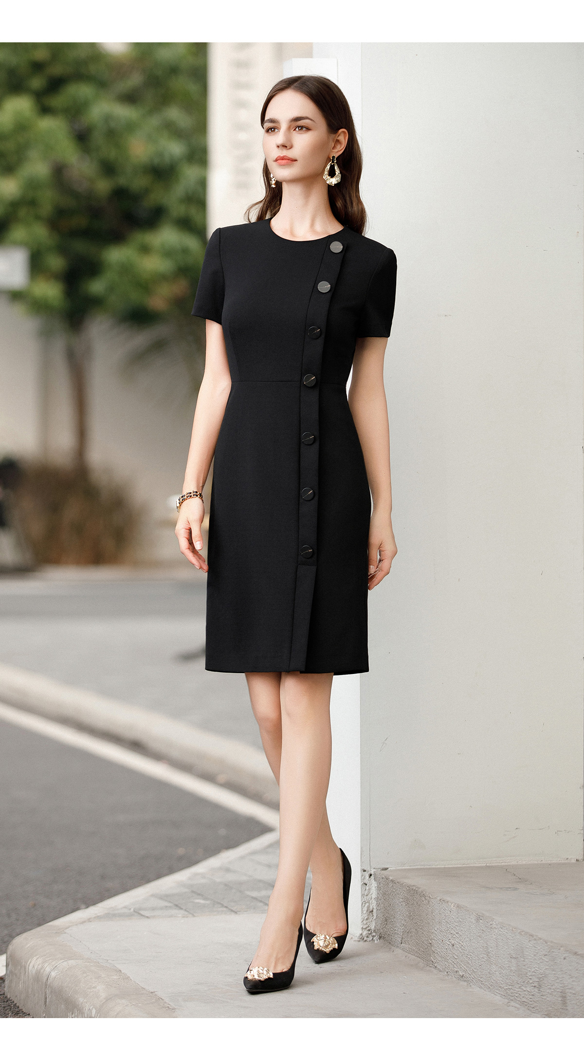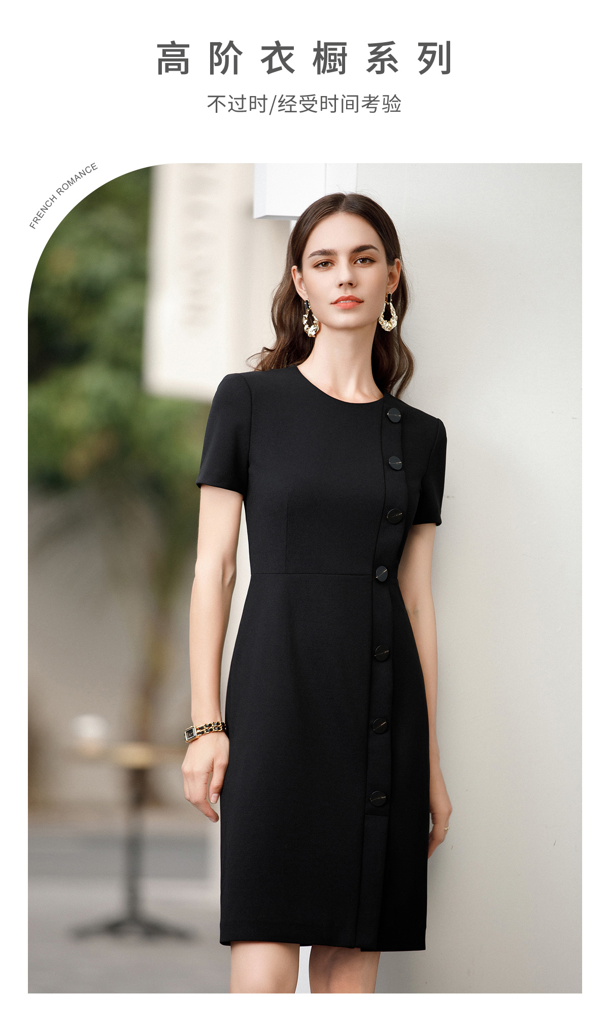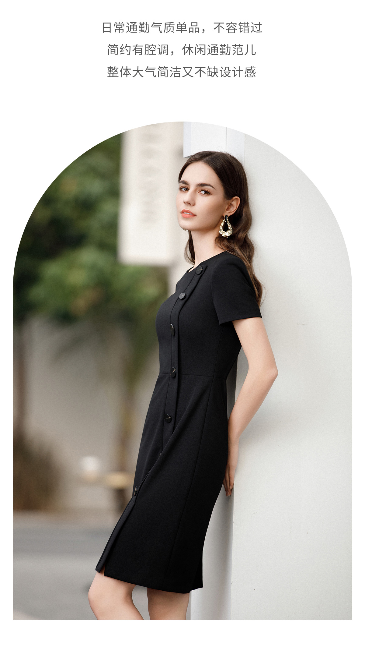 AD2024夏季短袖连衣裙轻熟风职业西装裙复古通勤秘书上班族工作装