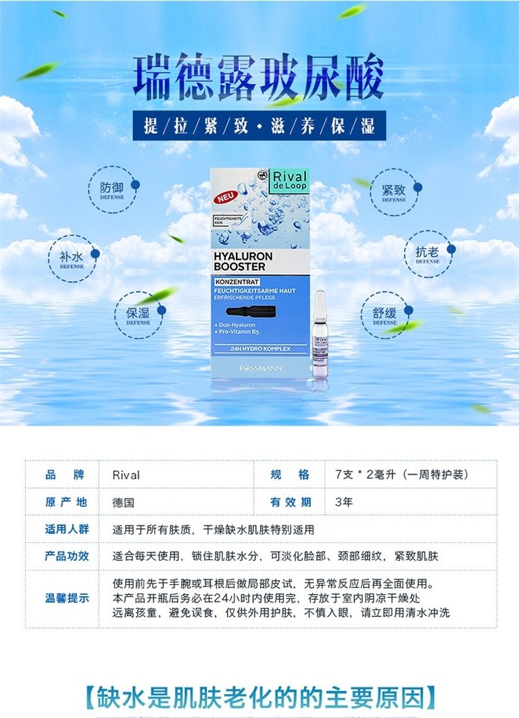 (永久下架)德国Rival de loop瑞德露 双倍玻尿酸 2ml*7支