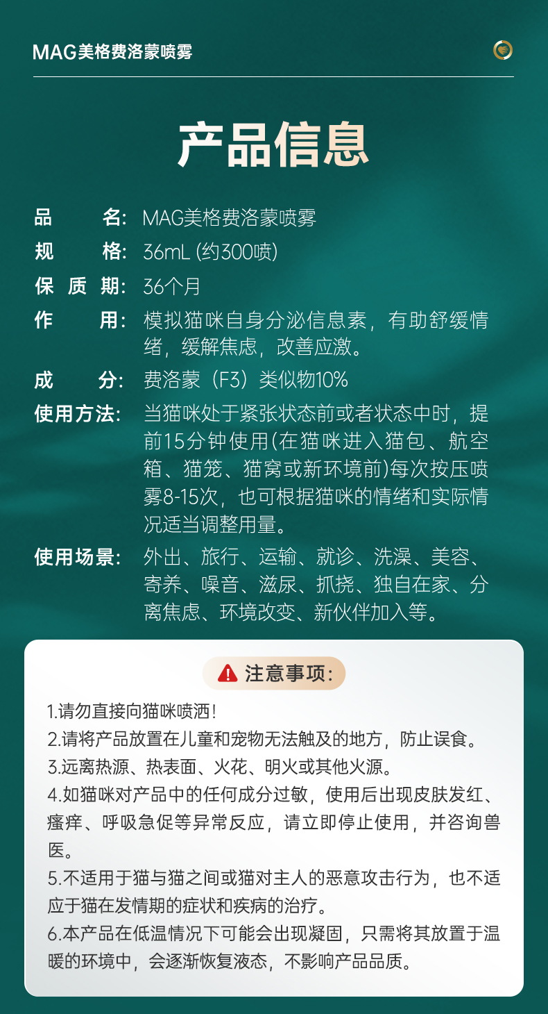 MAG费洛蒙喷雾猫用 有助预防应激反应安抚缓解情绪 防外出应激