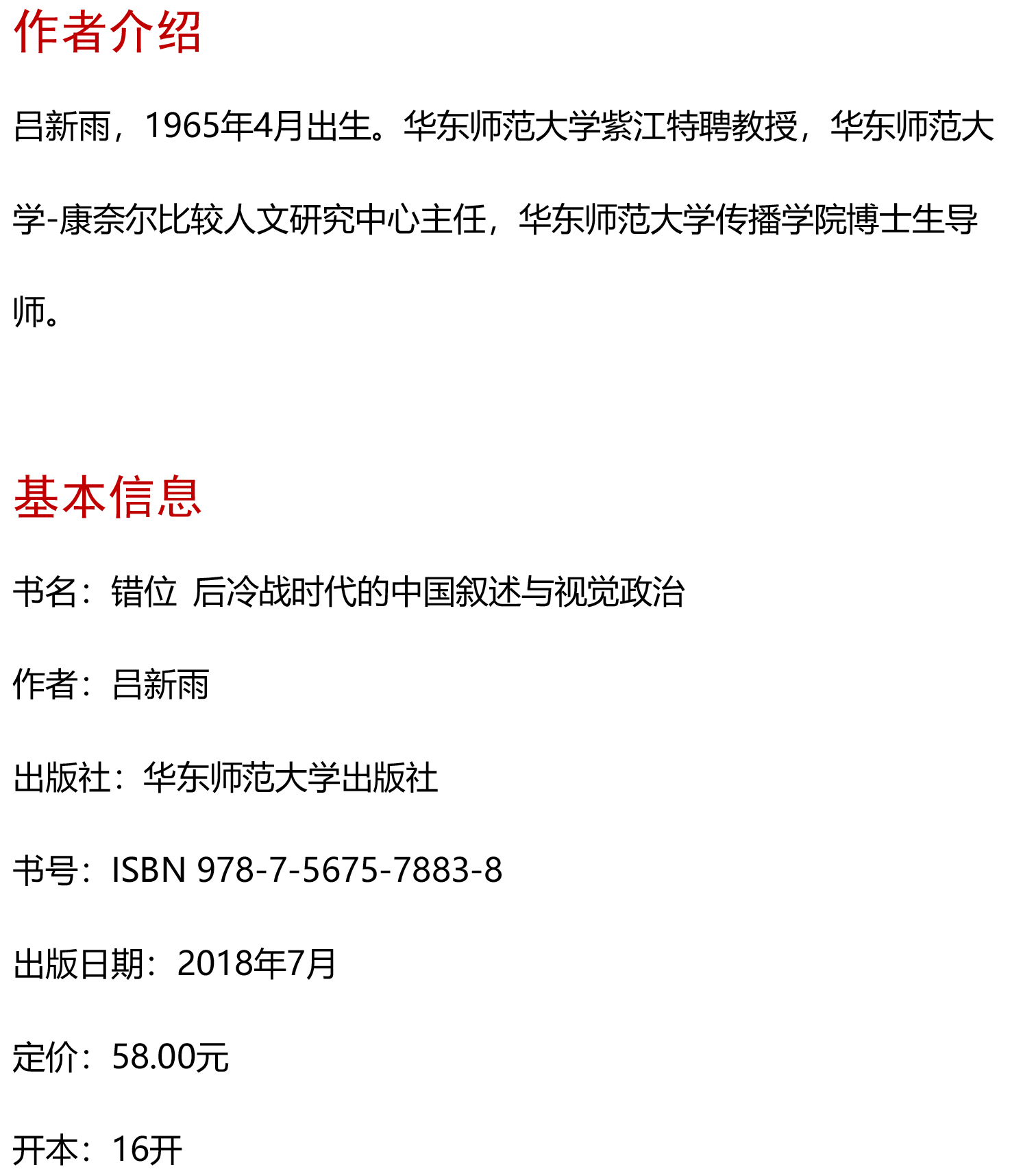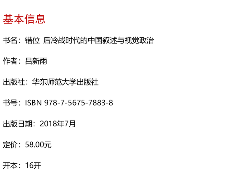 错位 后冷战时代的中国叙述与视觉政治 批判传播学 文论系列 六点图书