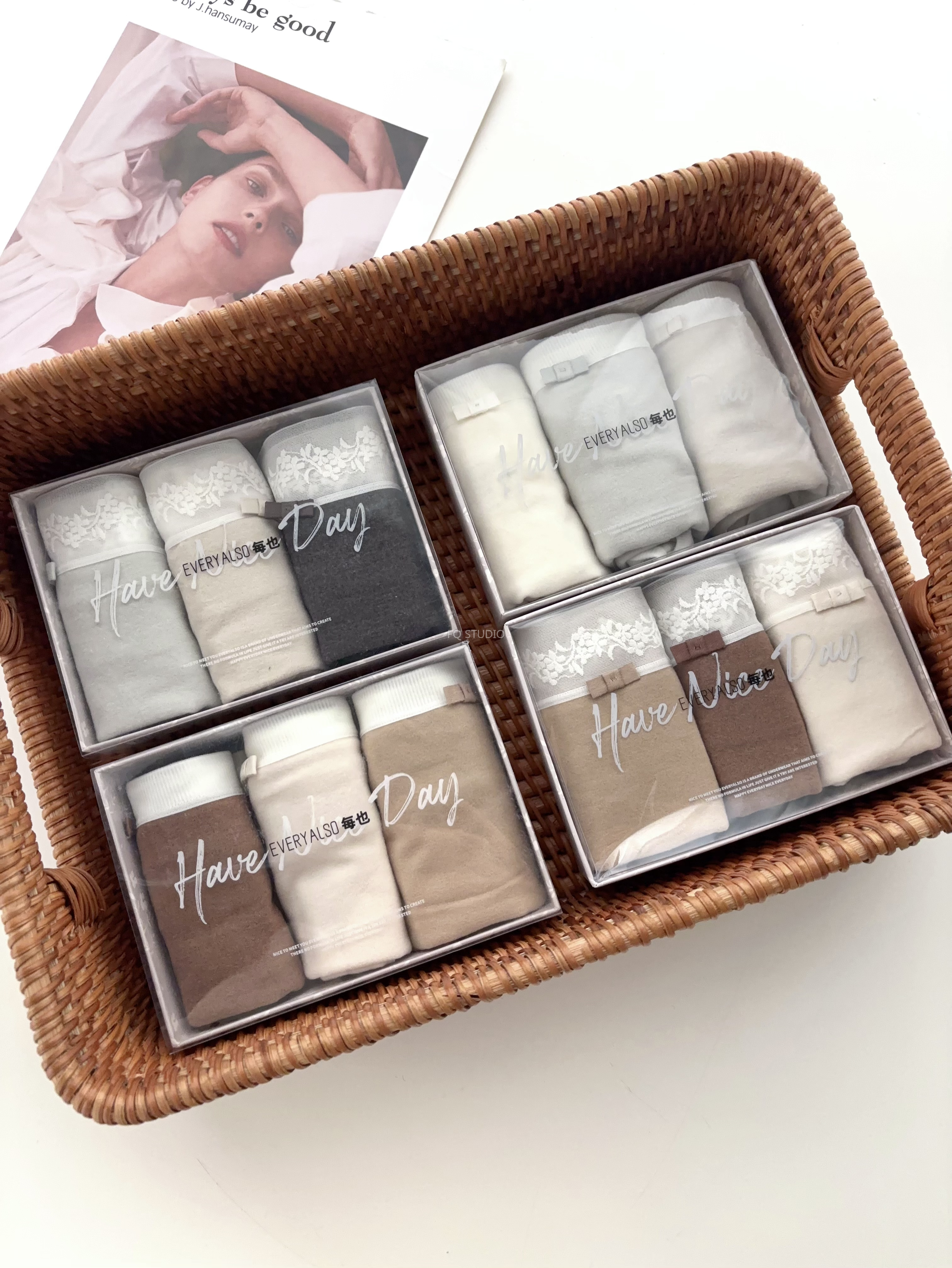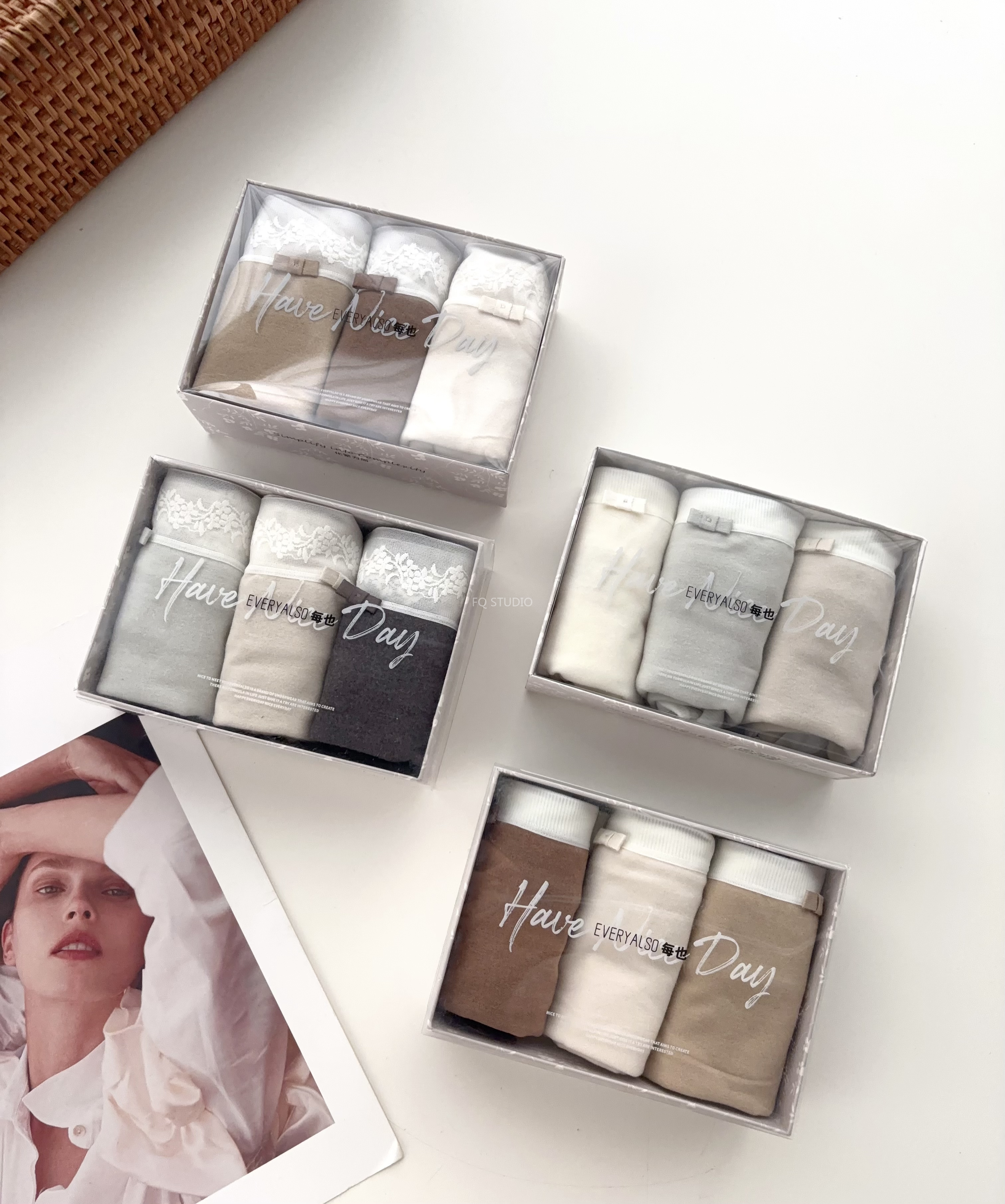 【秋冬磨毛恒温 高端女士内裤团】极简法式/蕾丝轻奢款两款可选,恒温发热+100%纯棉裆部配置依旧能打;磨毛升级软糯感翻倍,贴肤像裹软云朵,一组三条装,秋冬穿它幸福感爆棚~